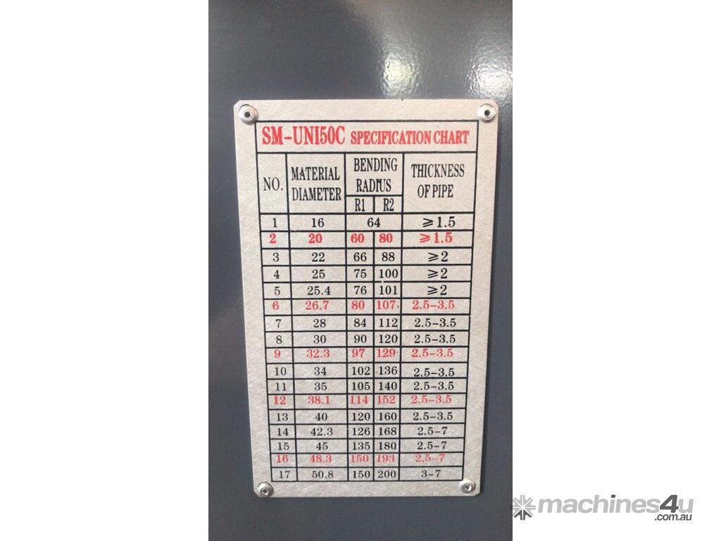 Tube & Pipe Bender. SM-UNI50C - 50mm Capacity Complete with 4 Sets of Tooling to Suit, Hydraulic Clamp, Digital Angle Setting, 33.4mm, 42.4mm, 48.3mm Round & 40mm Square. Volt