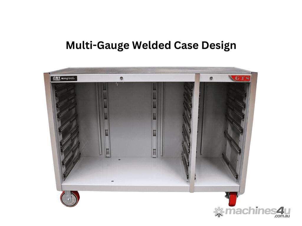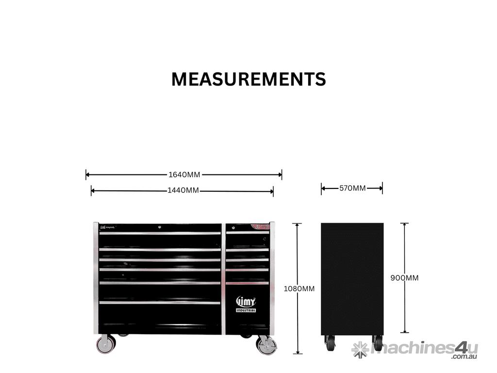 The 11 drawer intermediate mechanic’s tool kit from Jimy Tools offers a wide range of tools for the trade’s person. The kit consists of a 11-drawer drawer roller cabinet that have been powder coated with a tough industrial finish, 1.0mm thick steel, fully lockable with rear internal locking system, dual gas strut system for lidandball bearing slide drawers with twin slides on the deeper drawers.