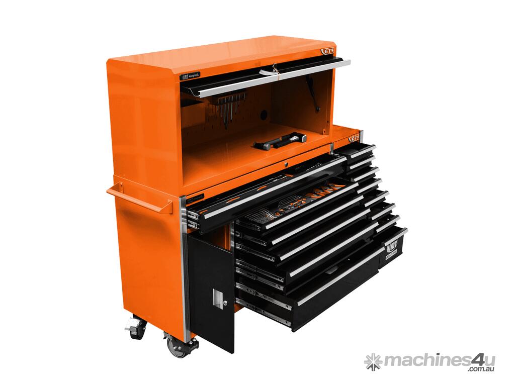 The 14 drawer “Intermediate" hutch tool workshop from Jimy Tools offers a great range of tools for the professional mechanic. The kit consists of a hutch top box and an 11-drawer roller cabinet, all have been powder coated with a tough industrial finish, 1.2mm thick steel, fully lockable with rear internal locking system, dual gas strut system for the hutchandball bearing slide drawers with twin slides on the deeper drawers.
