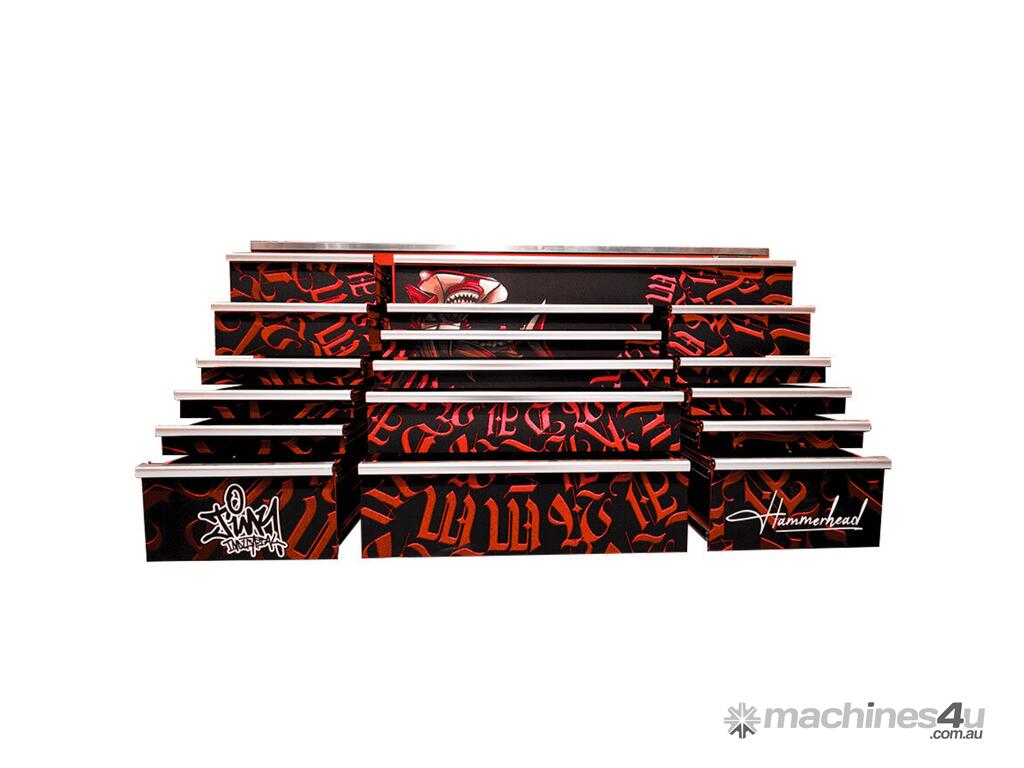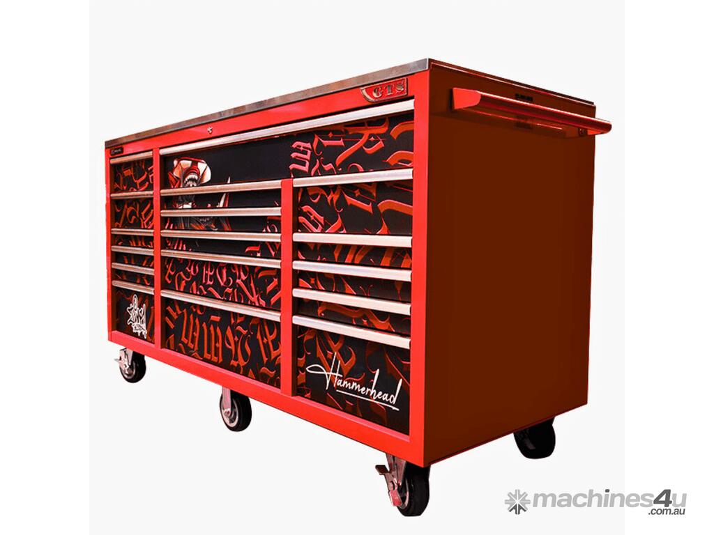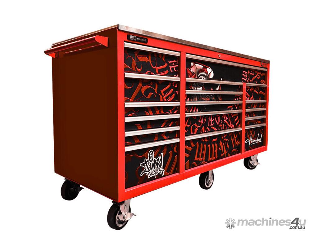 Jimy tool boxes are built to last! Tough industrial powder coating, 1.2mm gauge steel thickness, fully lockable bearing slide rails on the drawers with twin slide rails on the deeper drawers. Drawers fitted with Click-lock mechanism.