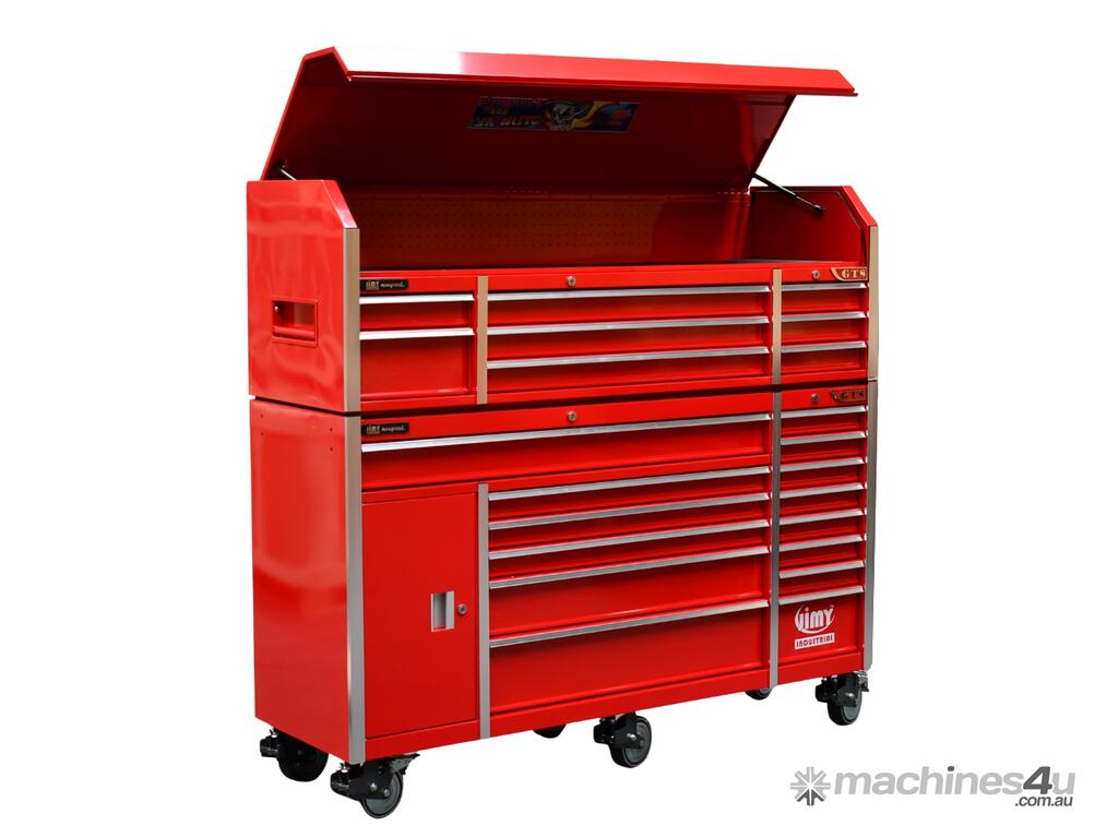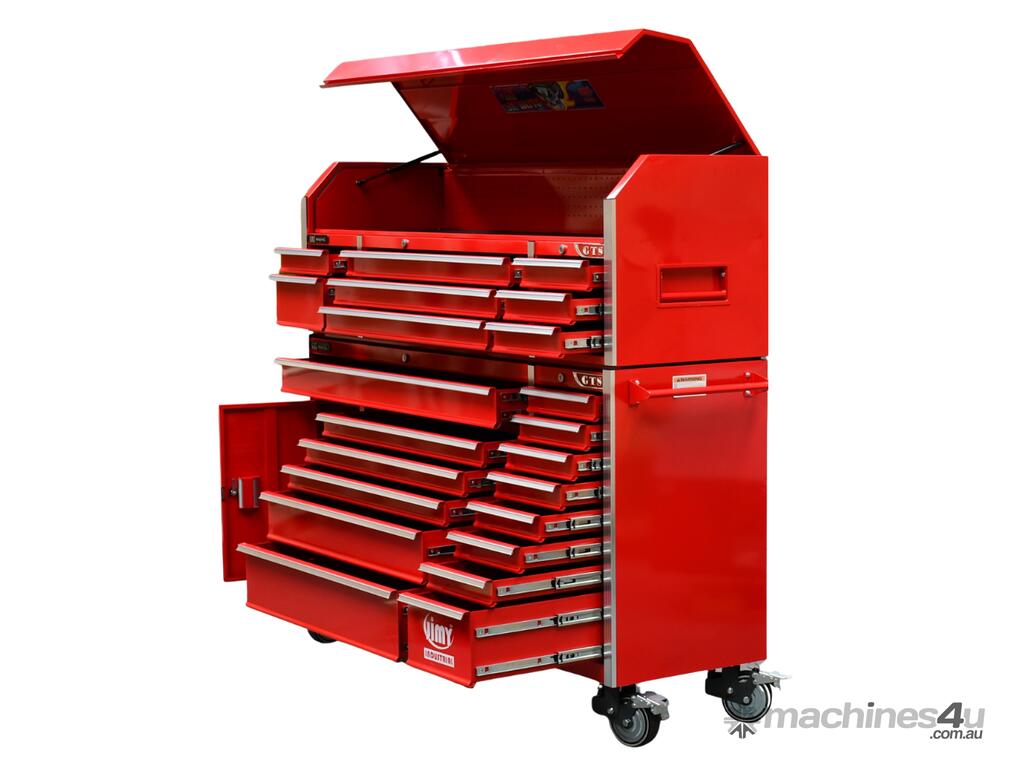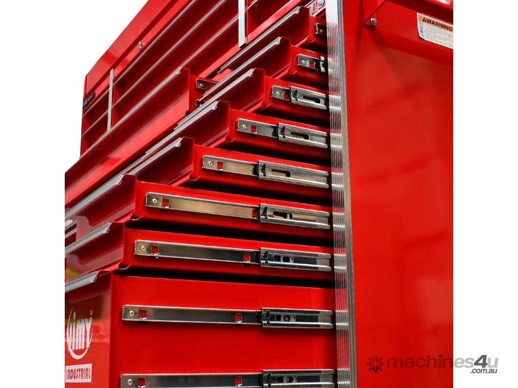 Jimy tool boxes are built to last! Tough industrial powder coating, 1.2mm gauge steel thickness, fully lockable bearing slide rails on the drawers with twin slide rails on the deeper drawers.