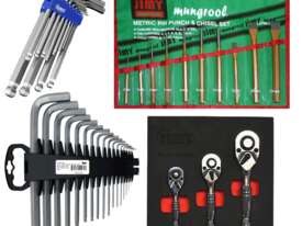 This tool kit is enormous with a full complement of sockets in ¼", 3/8", ½" & ¾" drives with all the extension bars ratchets and breaker bars to suit, and what about that 900mm long ½" drive extension bar! Check out all the jumbo spanners, pliers and hand tools you could wish for, see the list of contents below. With the foam drawer inserts you can easily see if you have left a tool on the job.