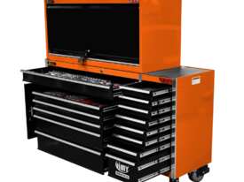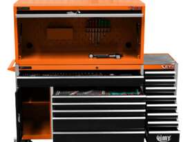 Jimy tool boxes are built to last! Tough industrial powder coating, 1.2mm gauge steel thickness, fully lockable bearing slide rails on the drawers with twin slide rails on the deeper drawers.
