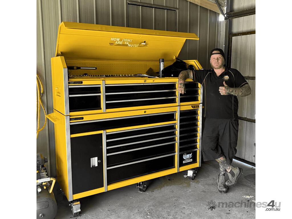 Jimy tool boxes are built to last! Tough industrial powder coating, 1.2mm gauge steel thickness, fully lockable bearing slide rails on the drawers with twin slide rails on the deeper drawers.