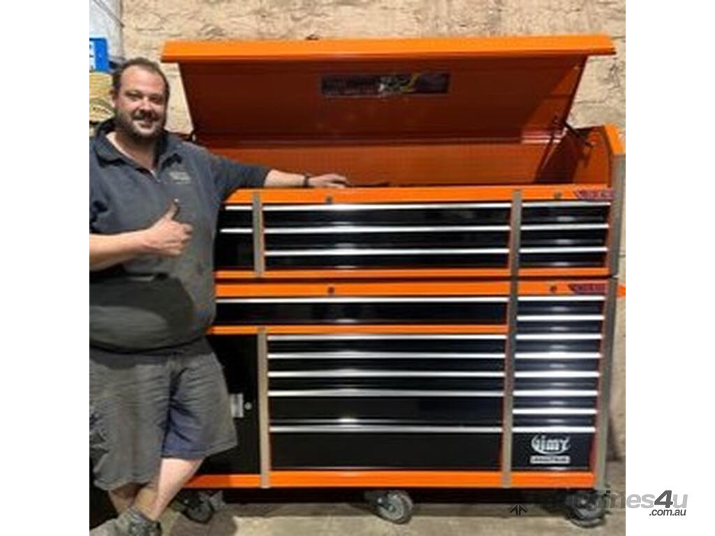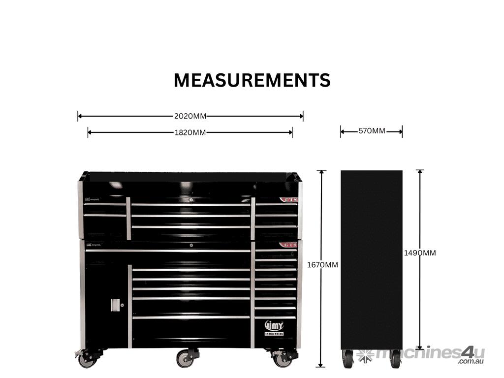 Jimy tool boxes are built to last! Tough industrial powder coating, 1.2mm gauge steel thickness, fully lockable bearing slide rails on the drawers with twin slide rails on the deeper drawers.