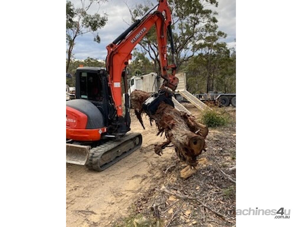 Roo Attachments Hydraulic Grabs for 4 to 6Ton Excavators. These are equipped with twin hydraulic cylinders, with other hydraulic grabs in stock to suit from 0.8T to 36T Excavators.