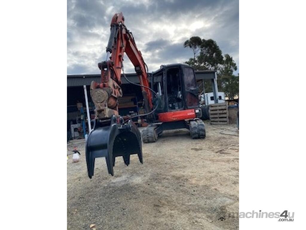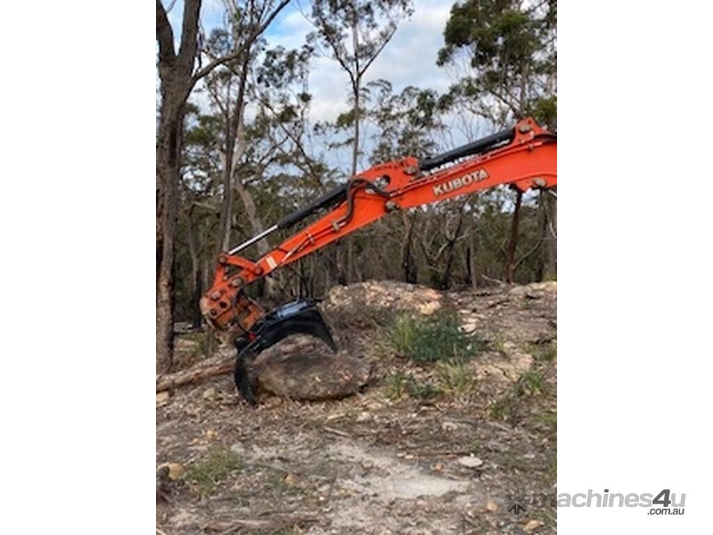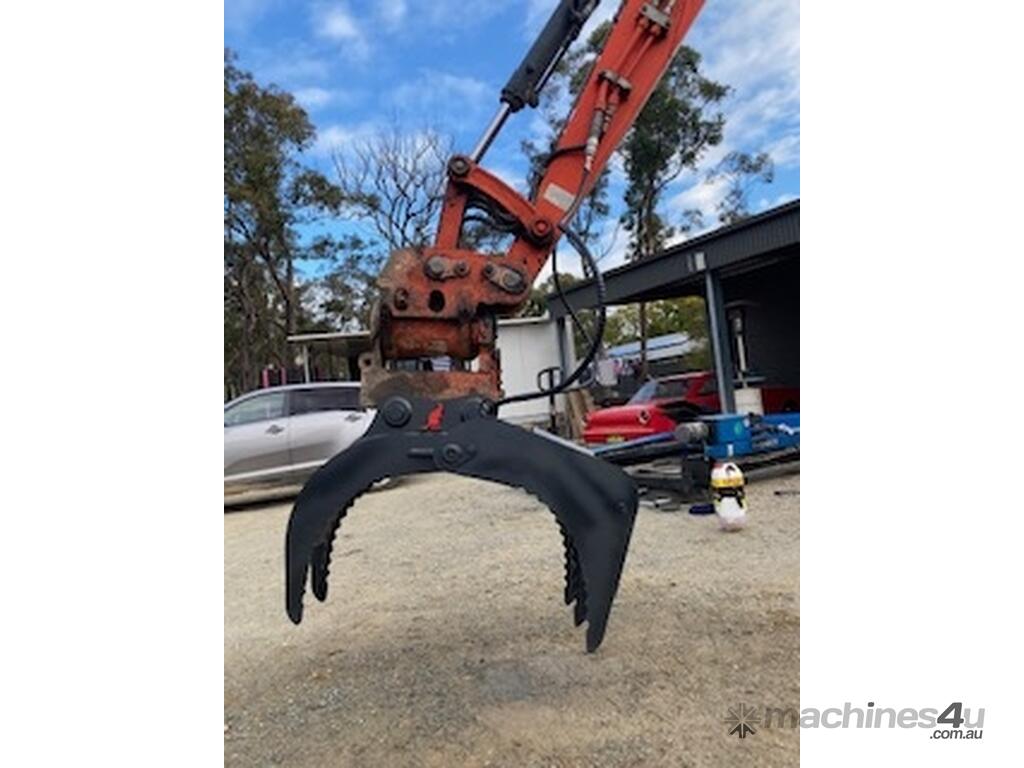 Roo Attachments Hydraulic Grabs for 4 to 6Ton Excavators. These are equipped with twin hydraulic cylinders, with other hydraulic grabs in stock to suit from 0.8T to 36T Excavators.