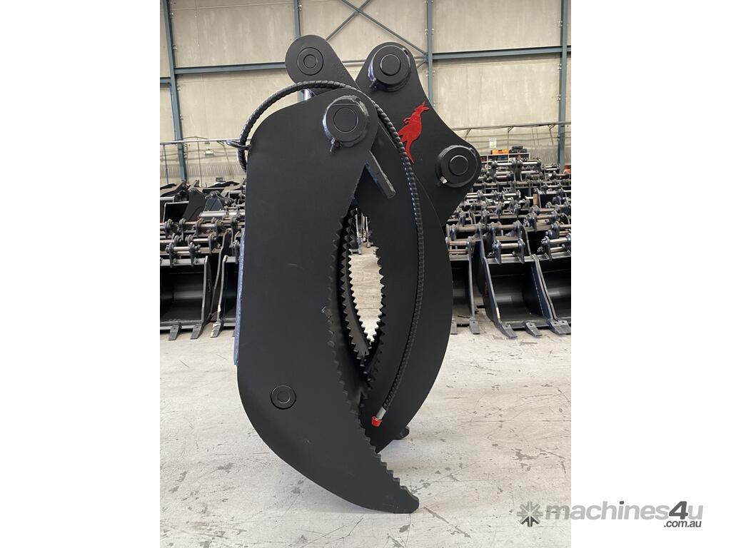 Roo Attachments Hydraulic Grabs for 6.5-9Ton Excavators. This grab is equipped with twin hydraulic cylinders, with other hydraulic grabs in stock to suit from 0.8T to 36T Excavators.