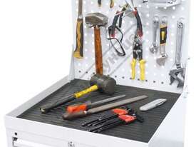 Includes steel frame backing panel with rubber protective base cover is great to rest tooling and precious parts on top of the cabinet