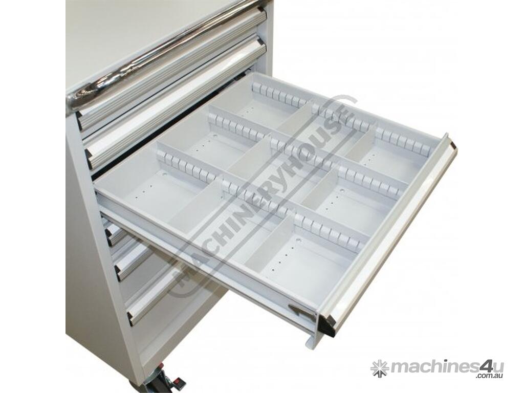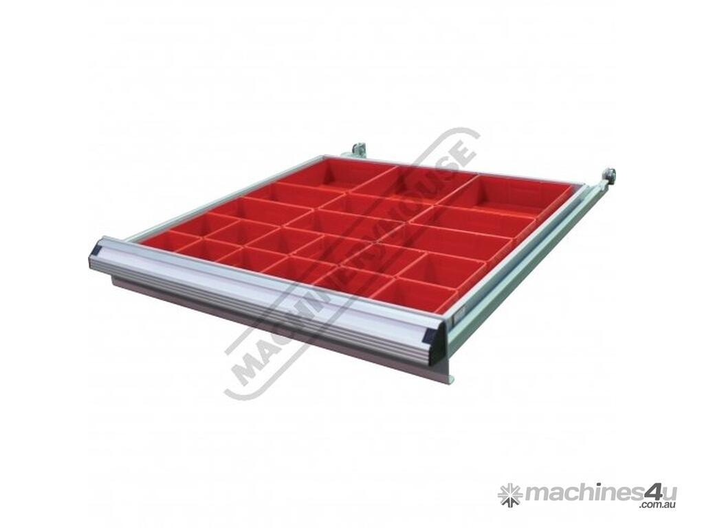 - Drawer 3 & 4 - 100mm high with moveable steel dividers 3x3 layout
