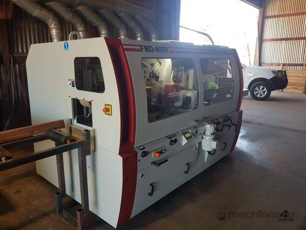 The FMD-609P is a solid machine suitable for heavy joinery or medium sawmilling applications in both soft and hardwoods. With hardchromed table plates and driven table rollers the FMD-609P will handle even the most difficult timbers.
