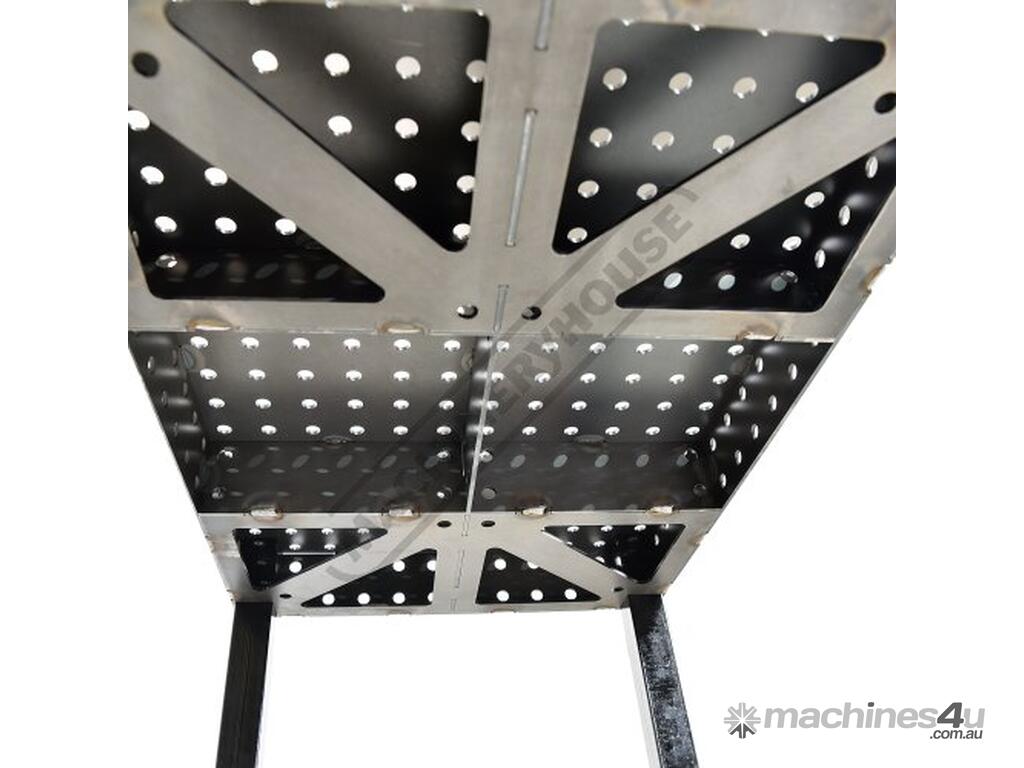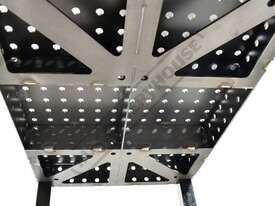 Precision laser cut from 5mm steel this self-weld welding table has been designed with 100mm high sides along with 100mm high inter-locking solid steel ribs to ensure the table surface remains flat during & after assembly. Complete with 16mm laser cut holes with an industry standard 50 x 50mm grid pattern making it the perfect solution for both welding and clamping applications.