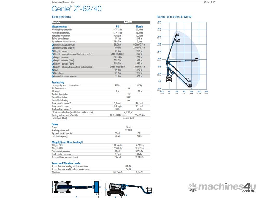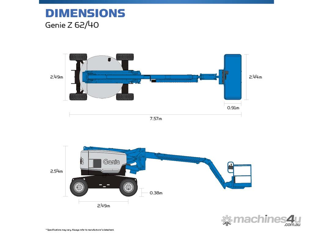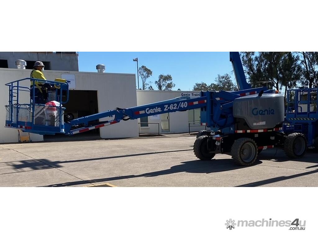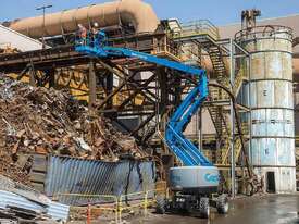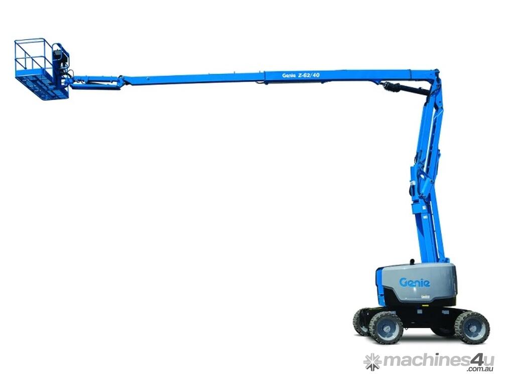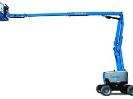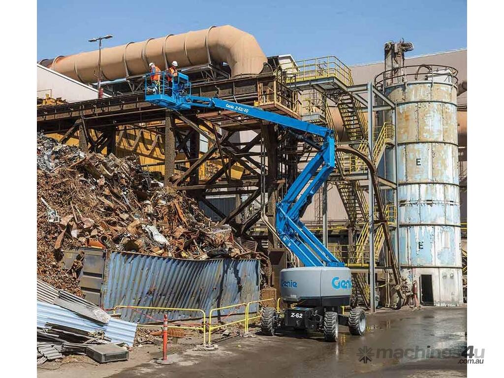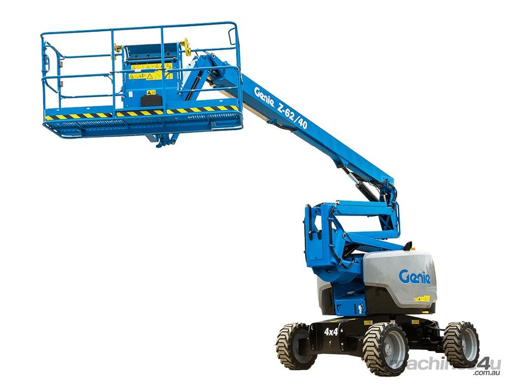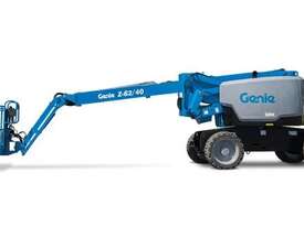Ideal for outdoor construction and industrial applications, the Genie® Z®-62/40 articulating boom lift with rough terrain capabilities provides lifting versatility with a combination of up, out and over positioning capabilities with outreach that’s second to none.