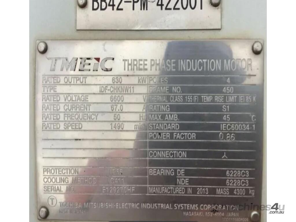 630 kw 840 hp 4 pole 1485 rpm 6600 volt 6.6kv Foot Mount 450 frame AC Squirrel Cage Electric Motor Toshiba TMEiC Type IDF-CHKNW11