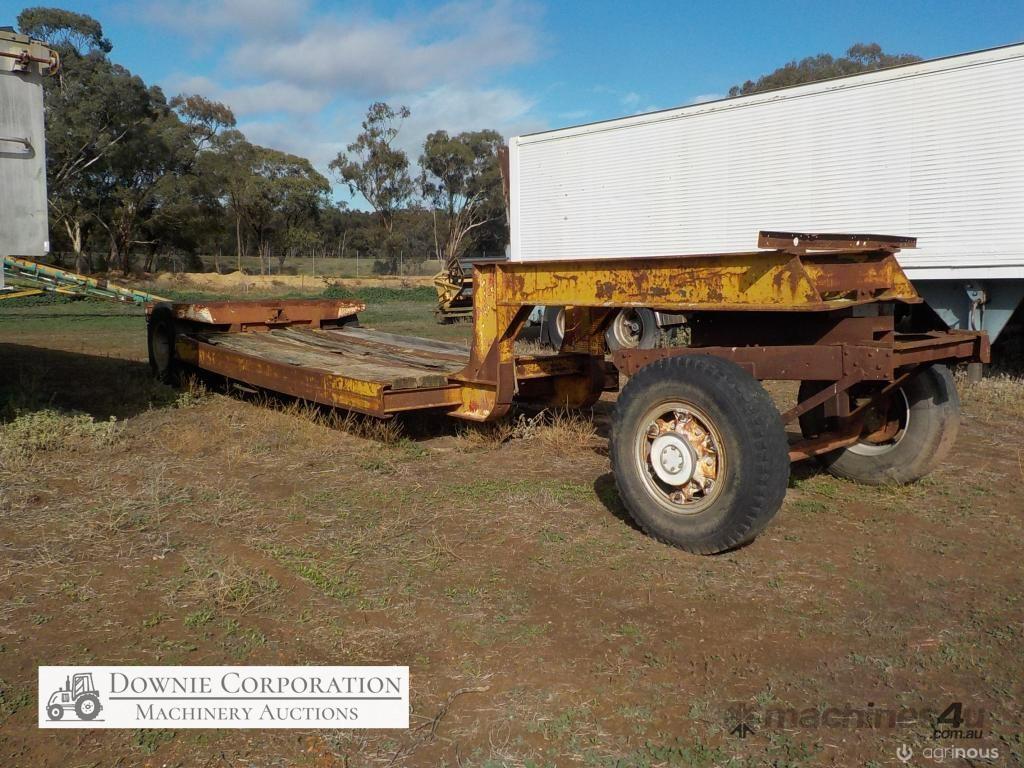 Low loader float ~ Deck is 4.5m X 2.4m Total 9.3m Long X 2.4m Wide. ~ A solid old trailer for farm or station use.