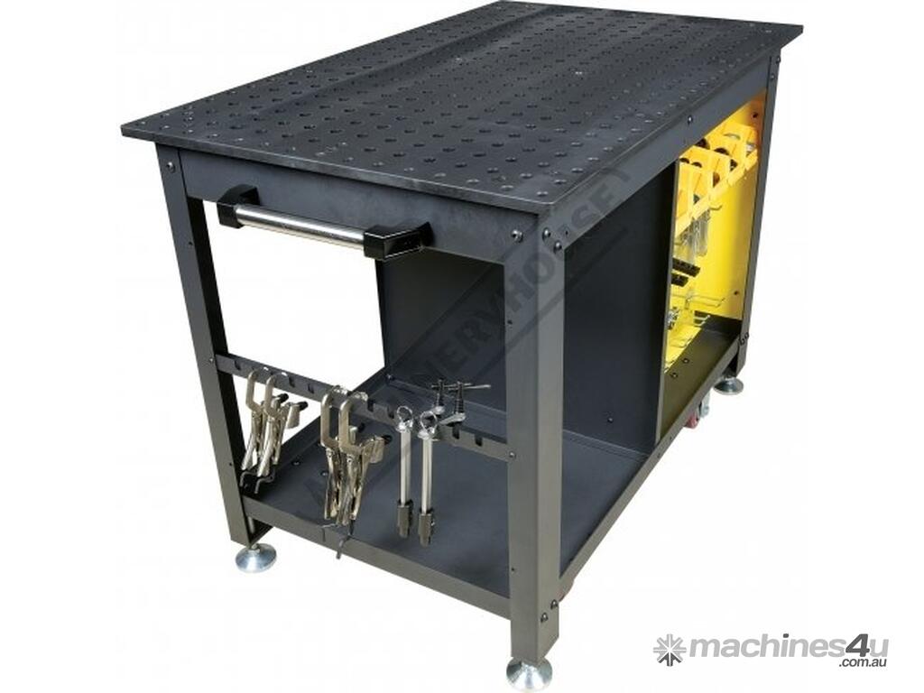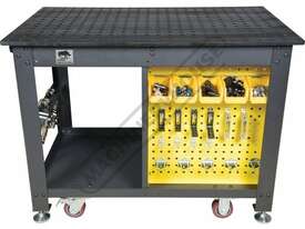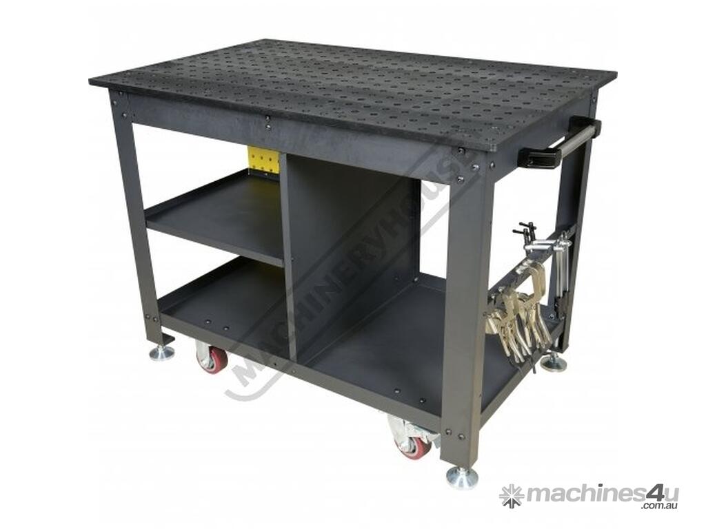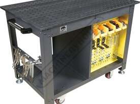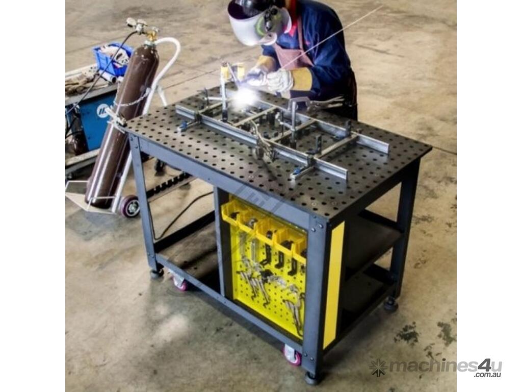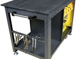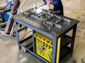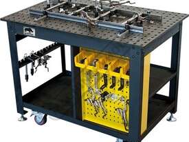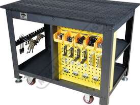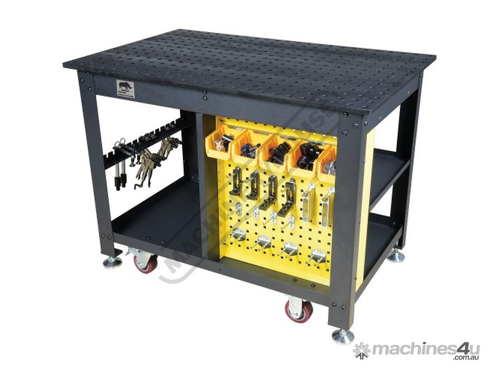 The Rhino Cart Mobile Fixturing Station is a turnkey system for fixturing and clamping in welding and fabrication. Clamp and fixture at any point on the reversible, flat, nitrided (heat treated) 1200 x 750mm tabletop for accuracy in all of your setups.