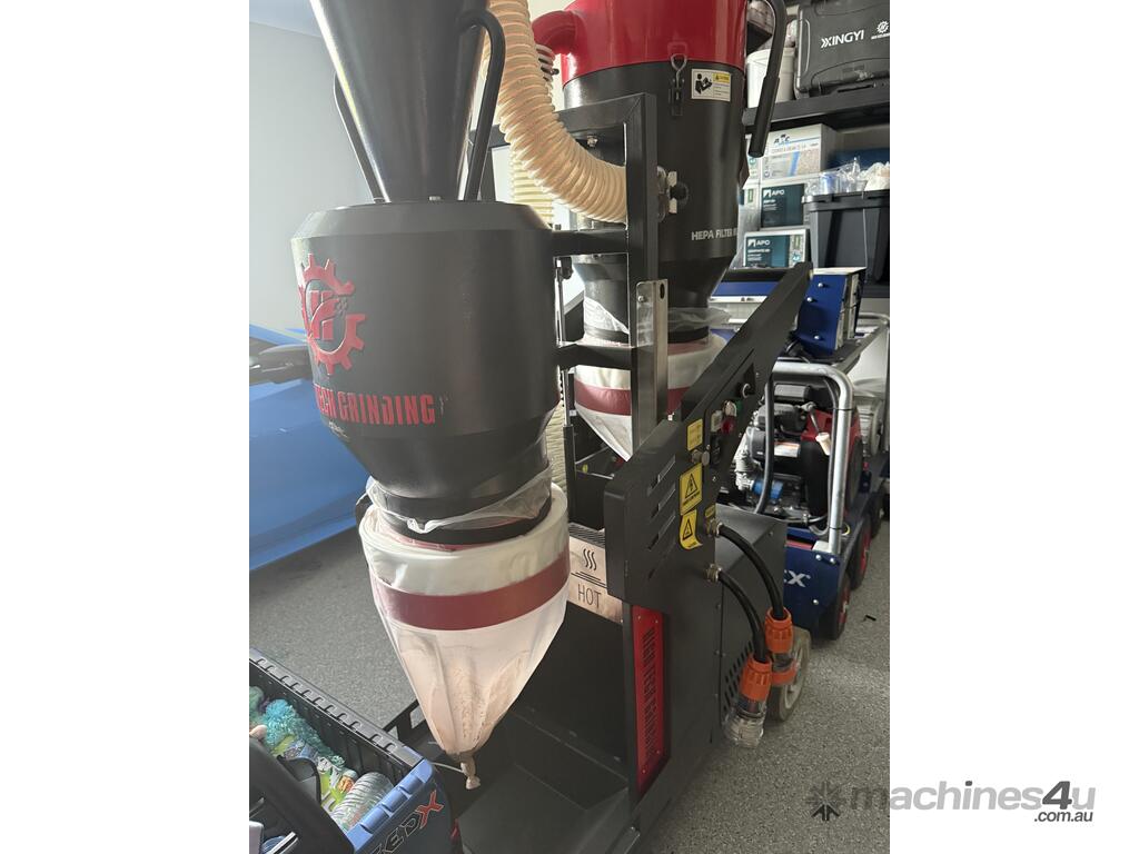 HEPA VAC - very powerful runs on 3 phase it’s able to run along side the grinder without problems.
