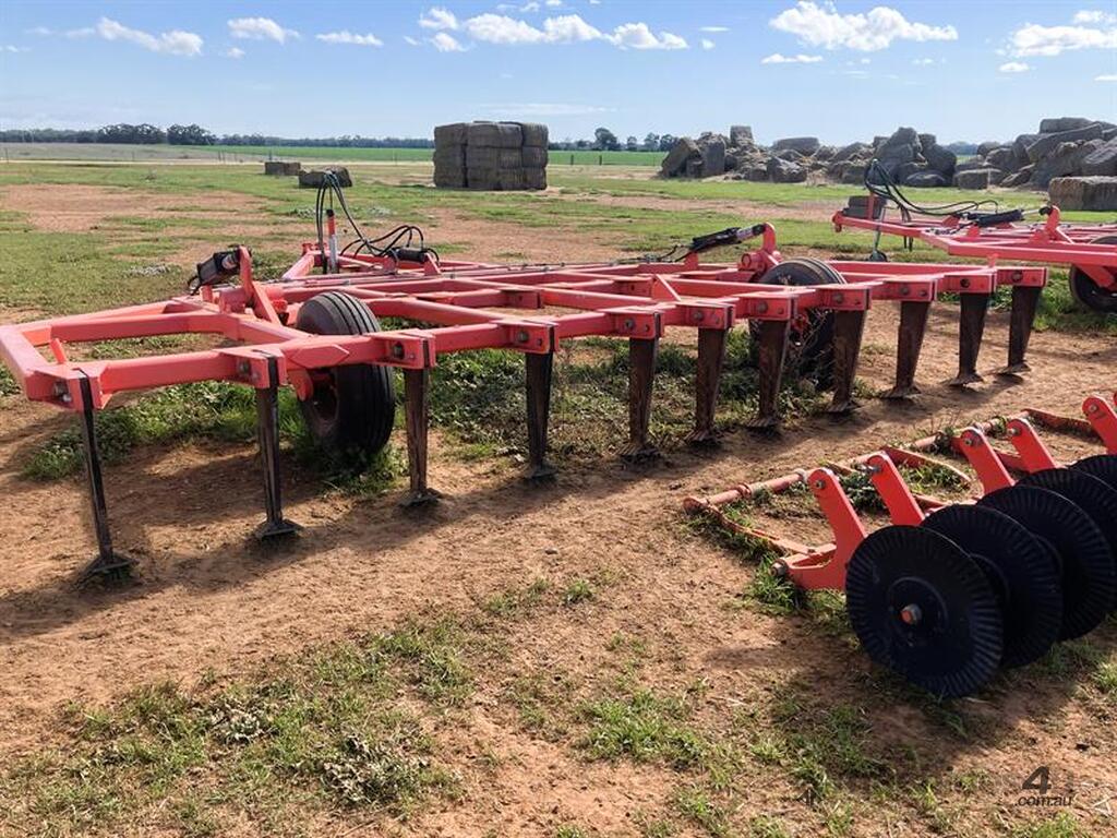 6M DEEP RIPPER, professionally built by Turf Engineering VIC. 11 tynes on 600mm spacings. removeable disc coulter assembly for front row when operating with 12 tynes at 300mm spacings, hydraulic lift and level. excellent condition. located Barrakee VIC. Available via MRE Auctions, contact Jono