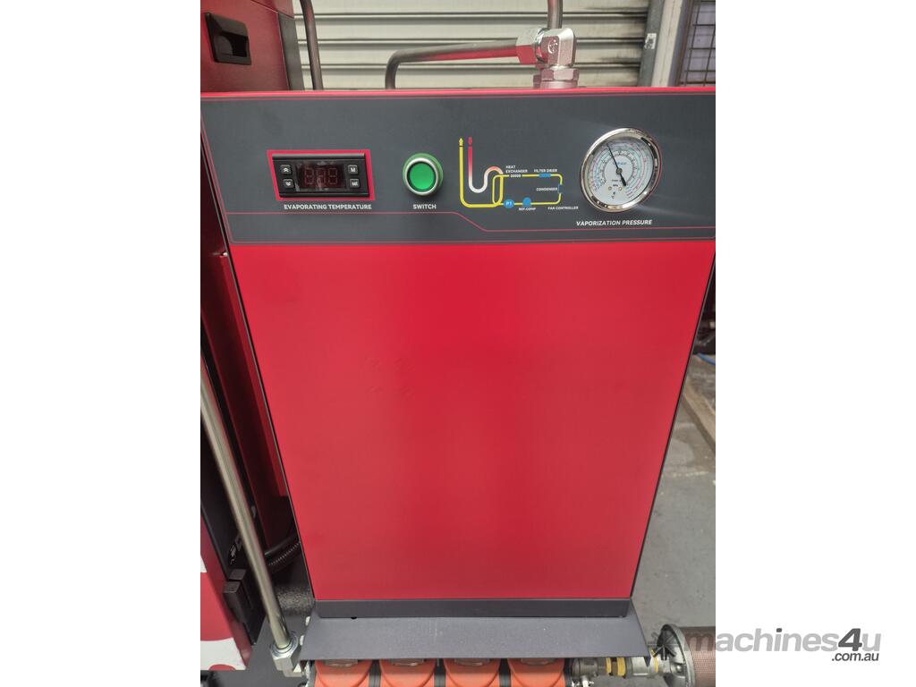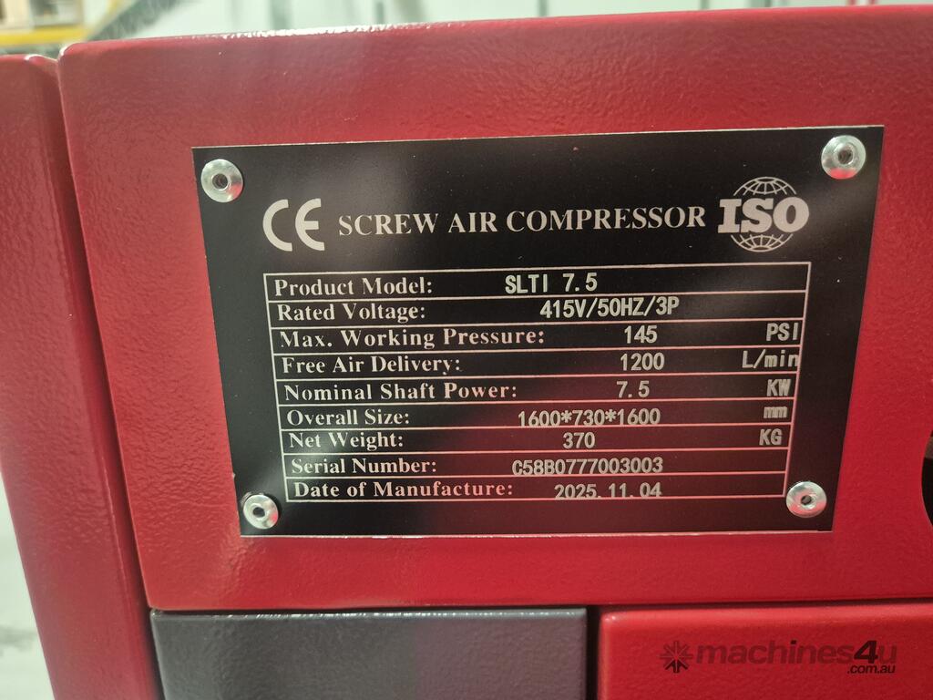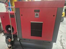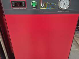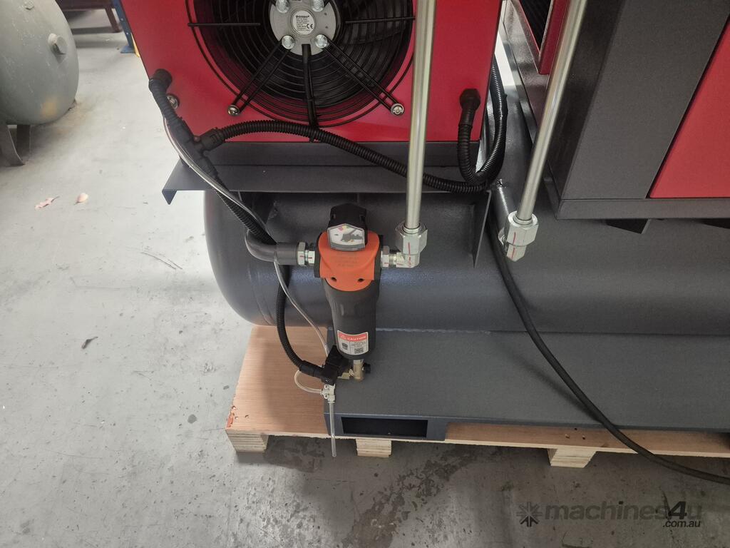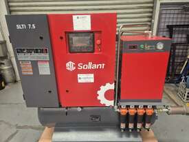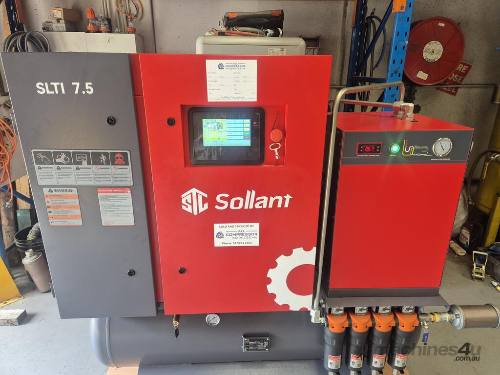 Brand new Sollant 7.5KW (VSD) direct drive rotary screw air compressor with air dryer and filter pack that supplies from 14 CFM to 31 CFM 10 BAR pressure. Machine comes with air dryer and filter pack mounted on a 285 litre air receiver tank. Machine comes with a complete major service kit.