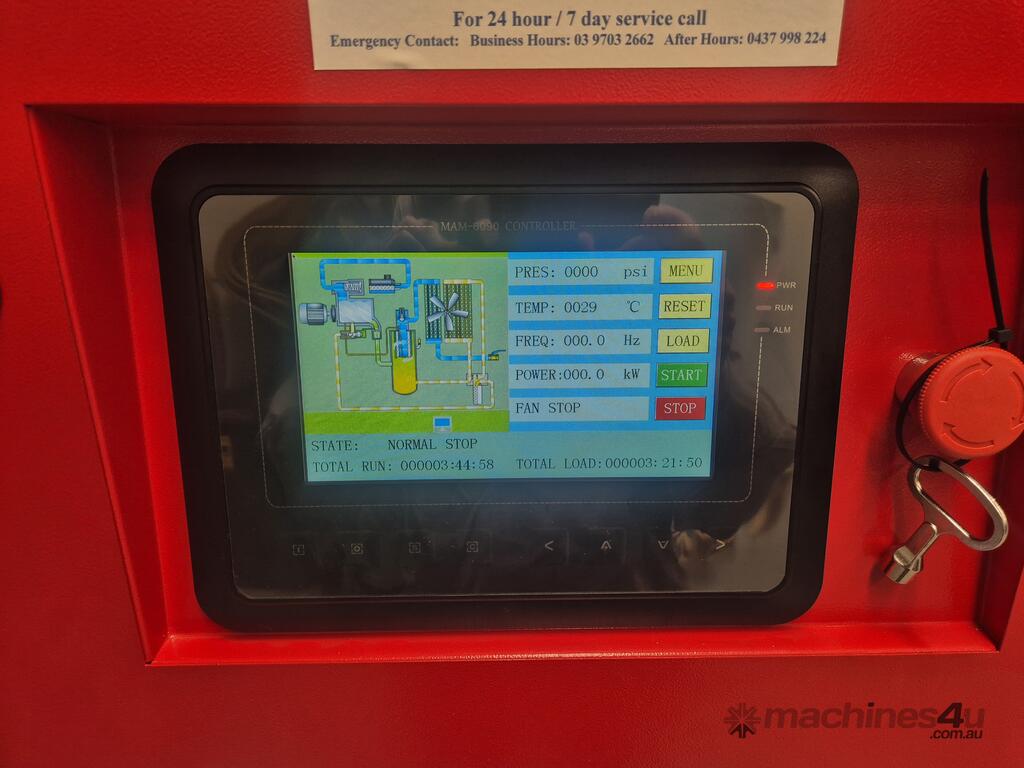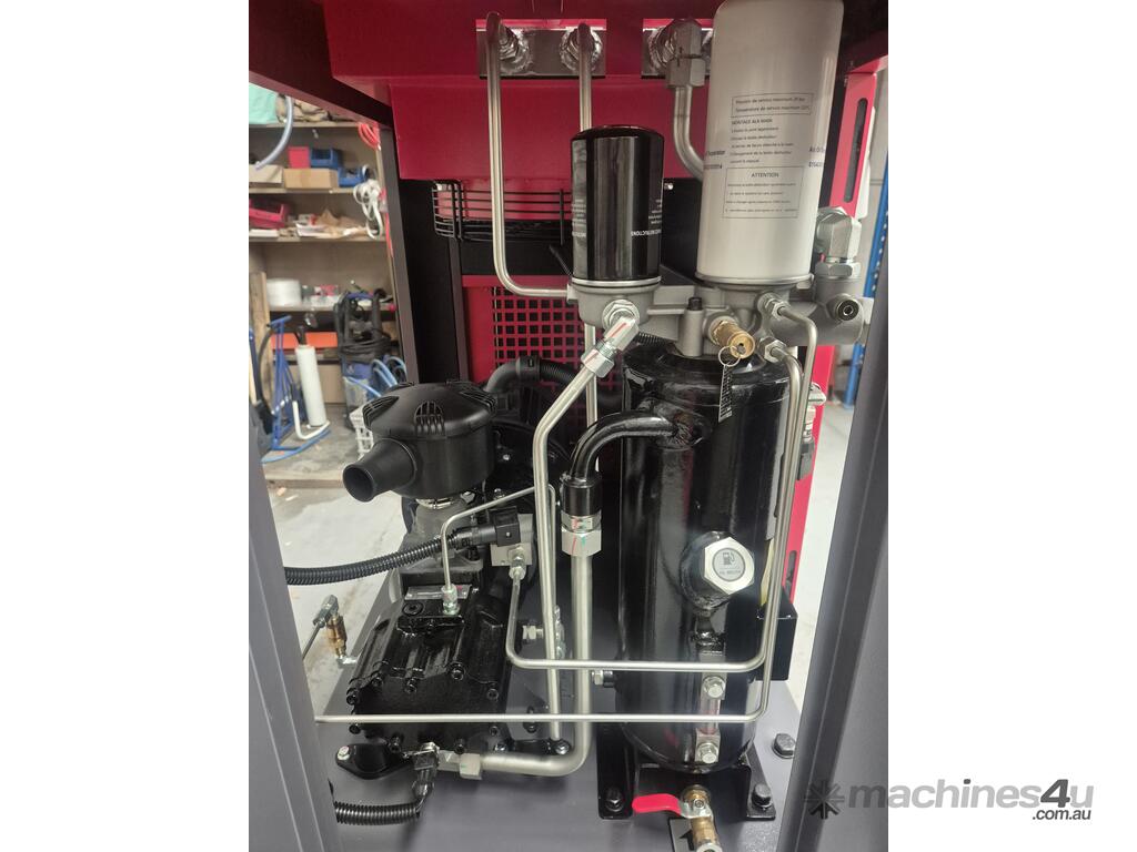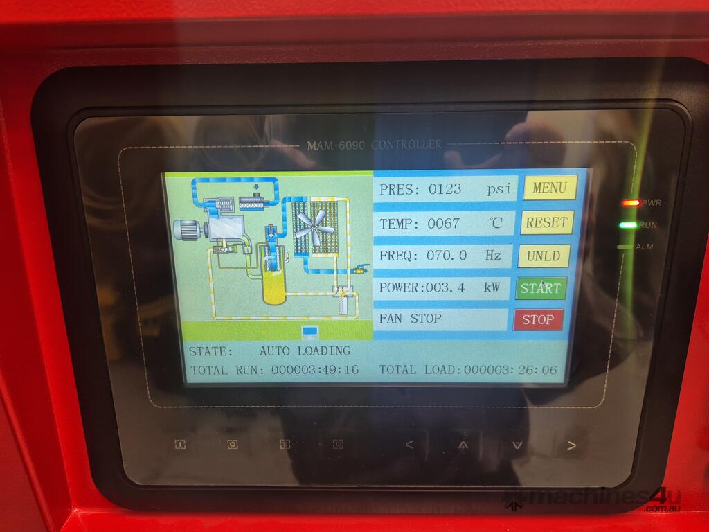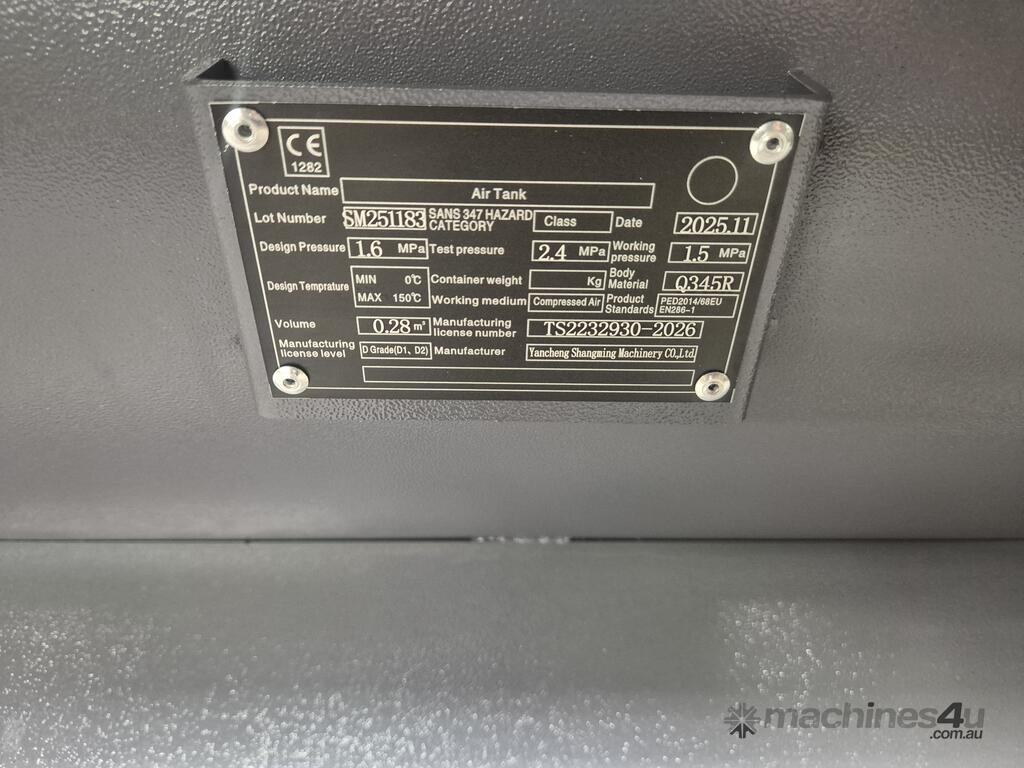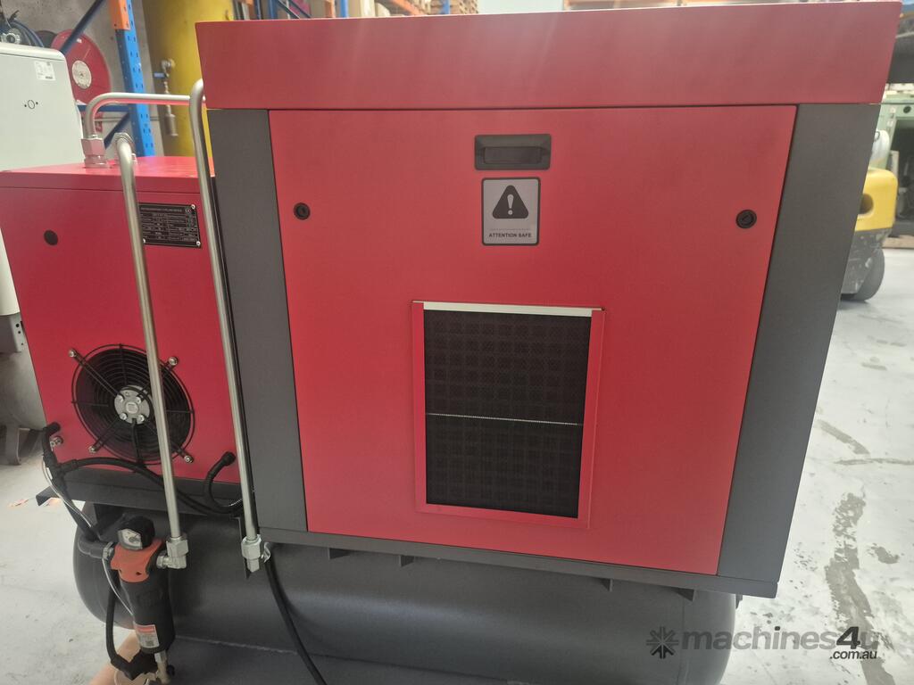 Brand new Sollant 7.5KW (VSD) direct drive rotary screw air compressor with air dryer and filter pack that supplies from 14 CFM to 31 CFM 10 BAR pressure. Machine comes with air dryer and filter pack mounted on a 285 litre air receiver tank. Machine comes with a complete major service kit.