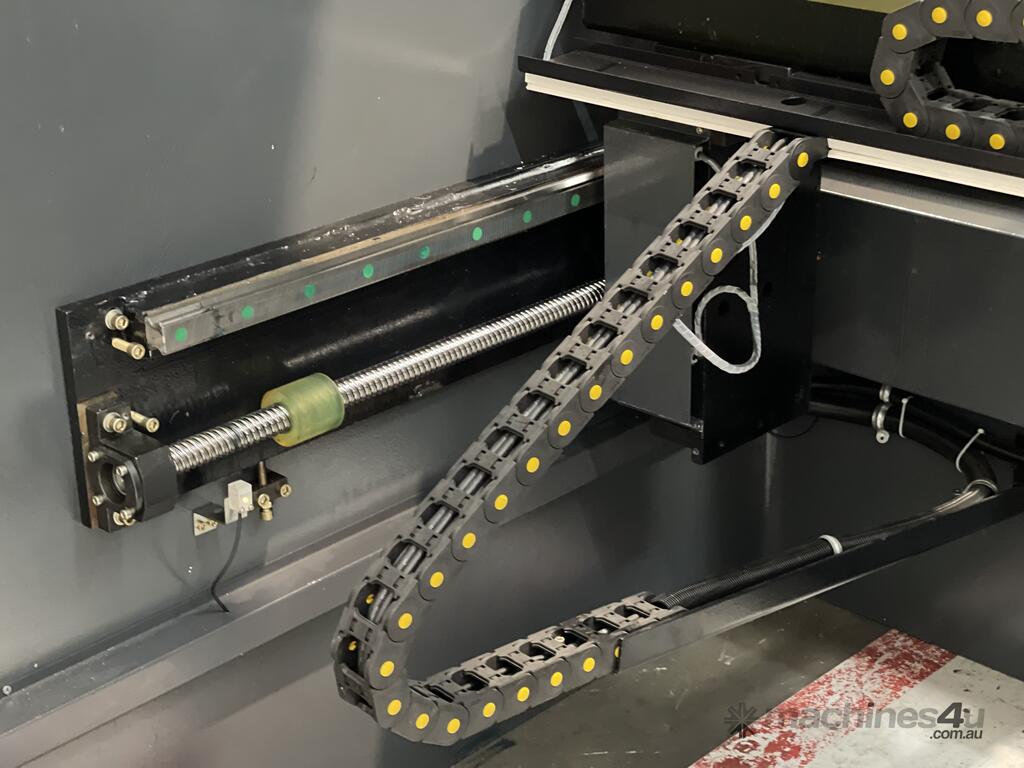 ?CNC controlled back gauge with ball screw spindles, ball guides and AC or DC servo motors