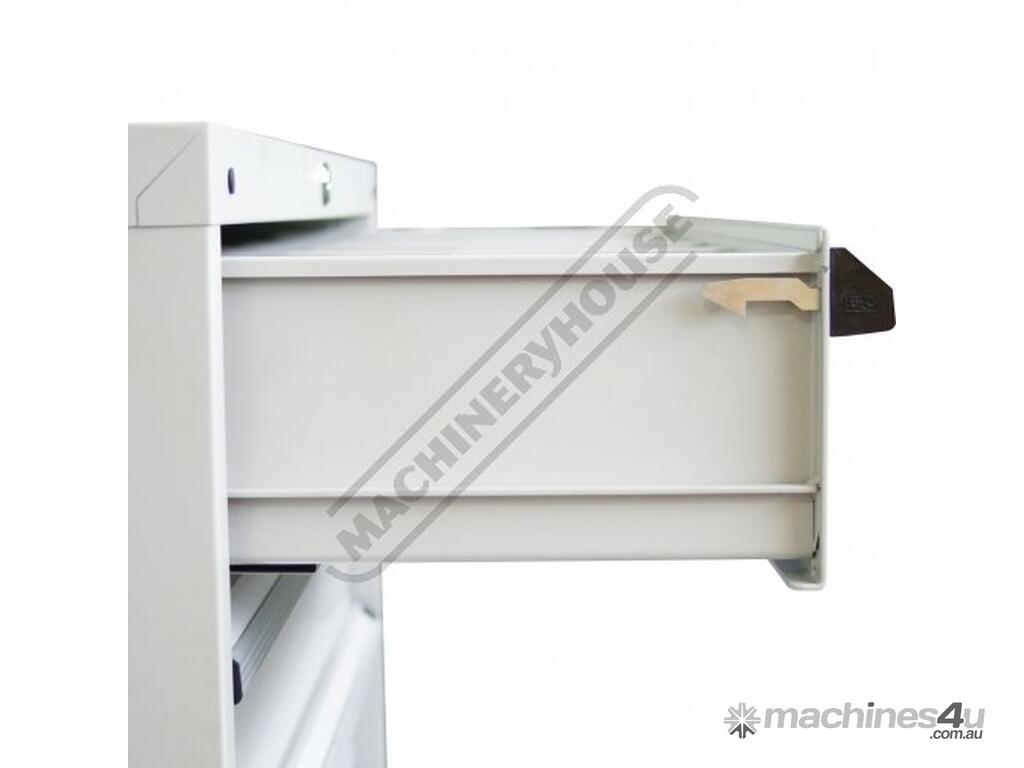 Single Key lock design for safe storage. Each drawer has a mechanical safety lock which allows one drawer to be opened at a time preventing the cabinet to tip over