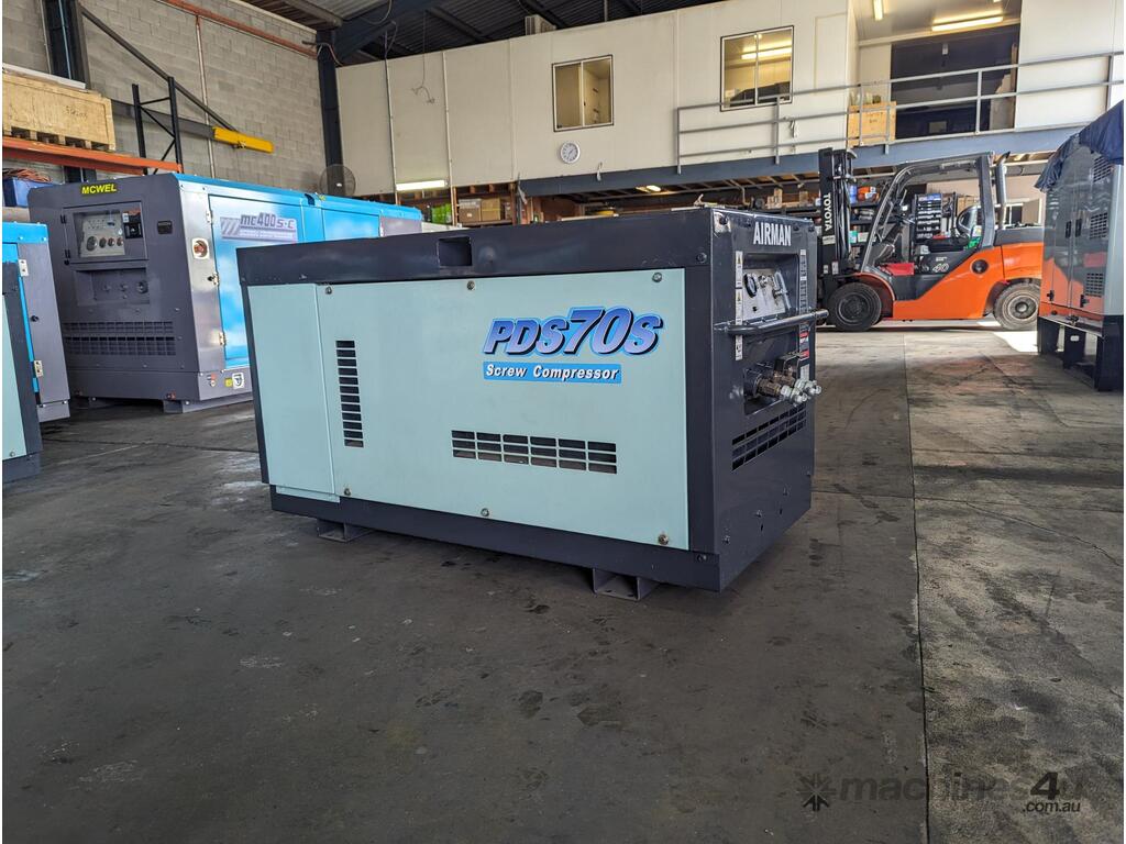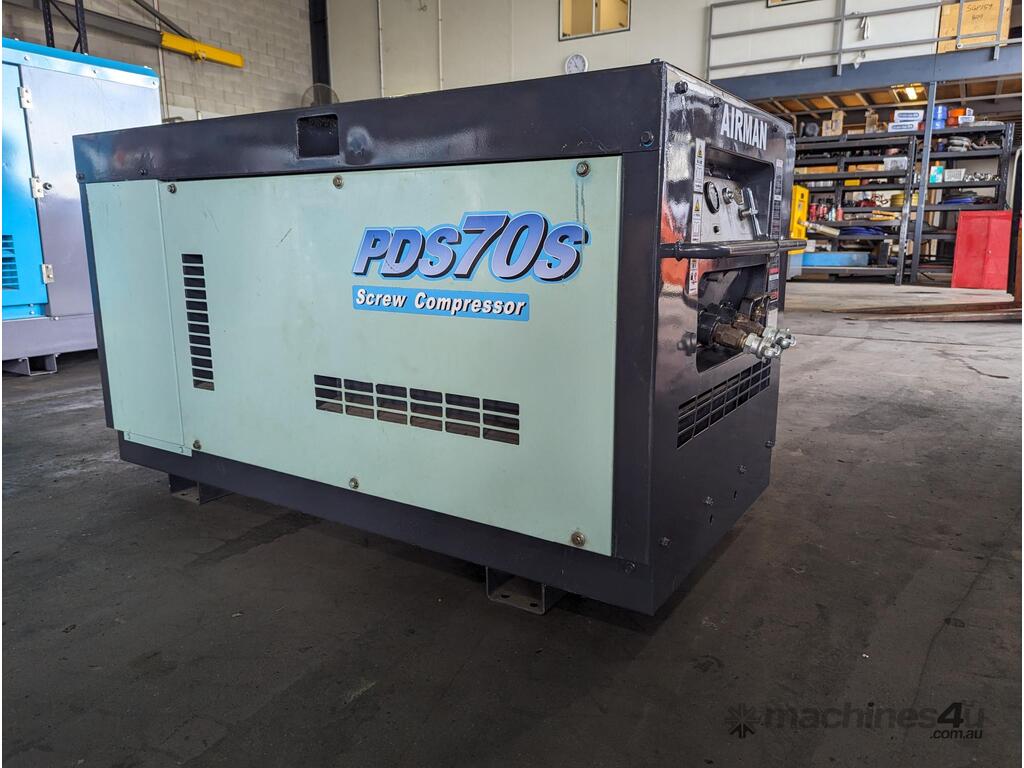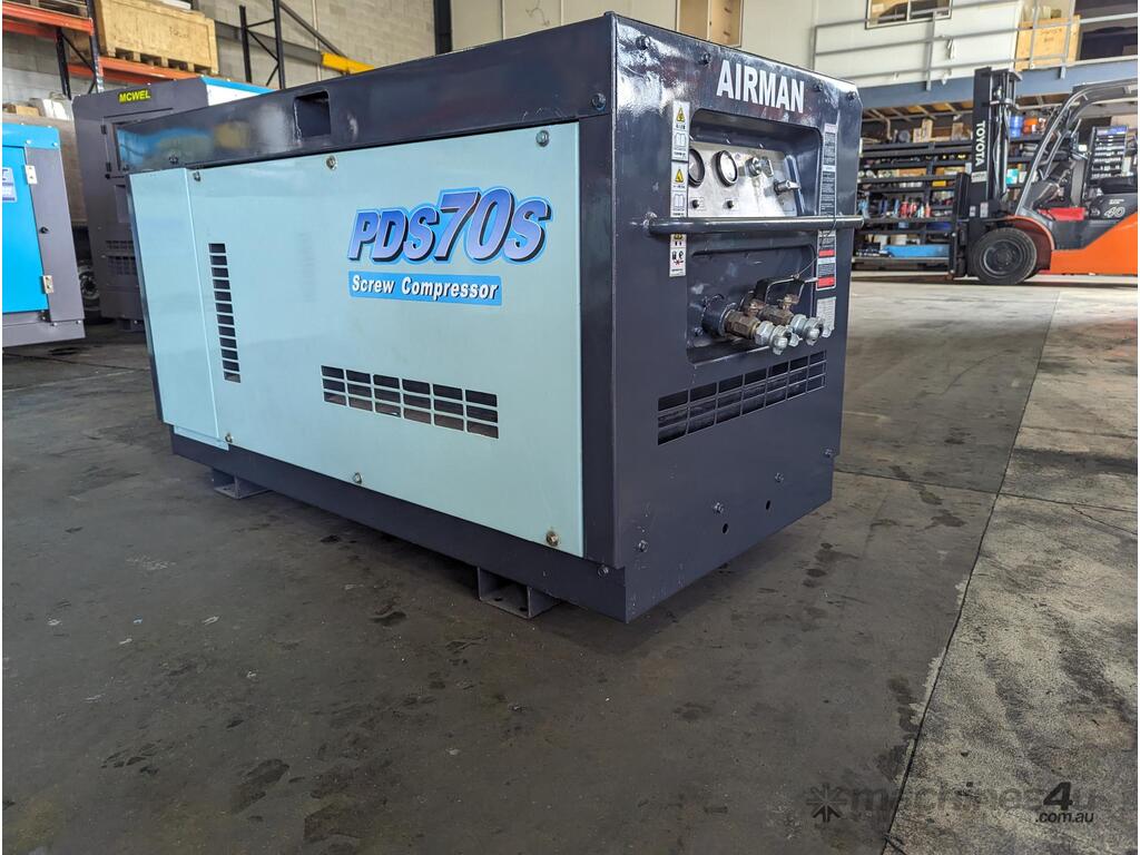 70CFM Airman Diesel Screw Compressor, Low hour, Tested and Serviced, Ex Stock Brisbane, Cheap Freight Australia wide, Great machine for Cleaning farm Equipment and earthmoving equipment. Compact light-weight for service vehicles.