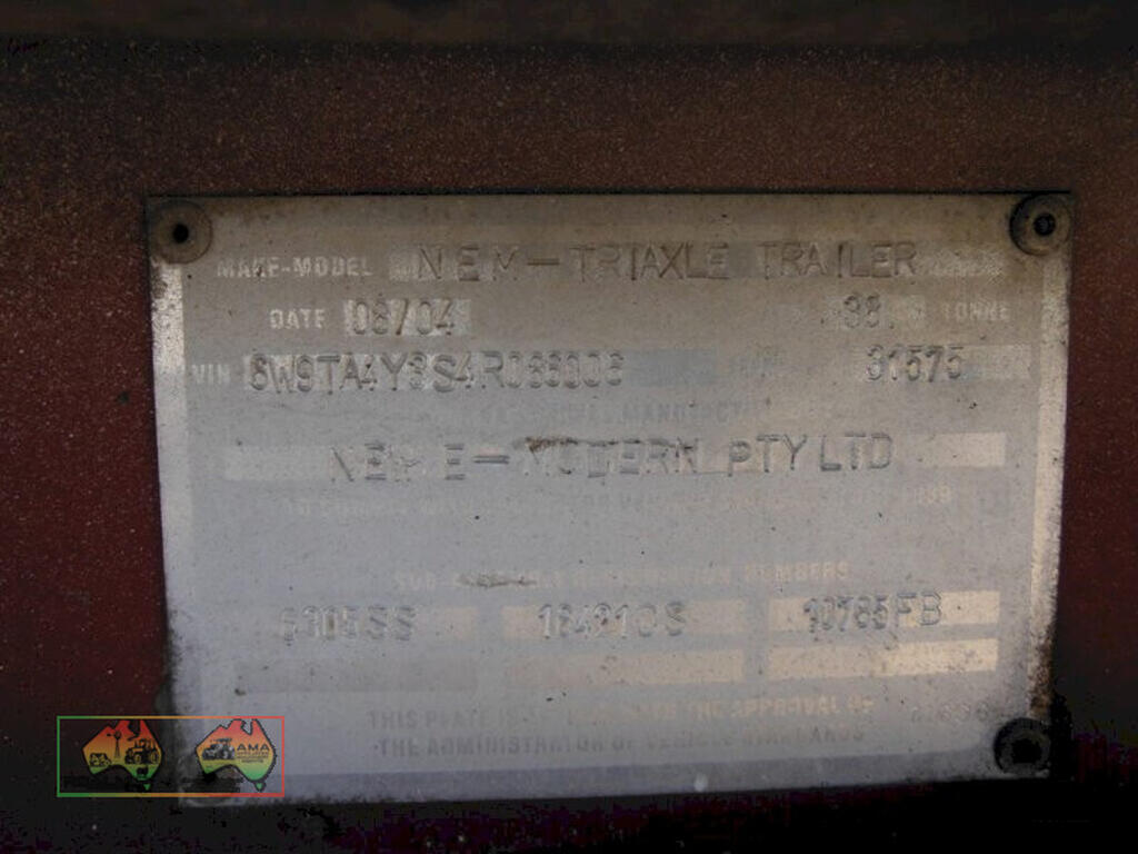 2004 Nem Tri axle steel tipper. ~ Spring suspension. ~ Repairable write off (No visible damage). As per photos. ~ Hoist has small weep. ~ All led lights, all working.