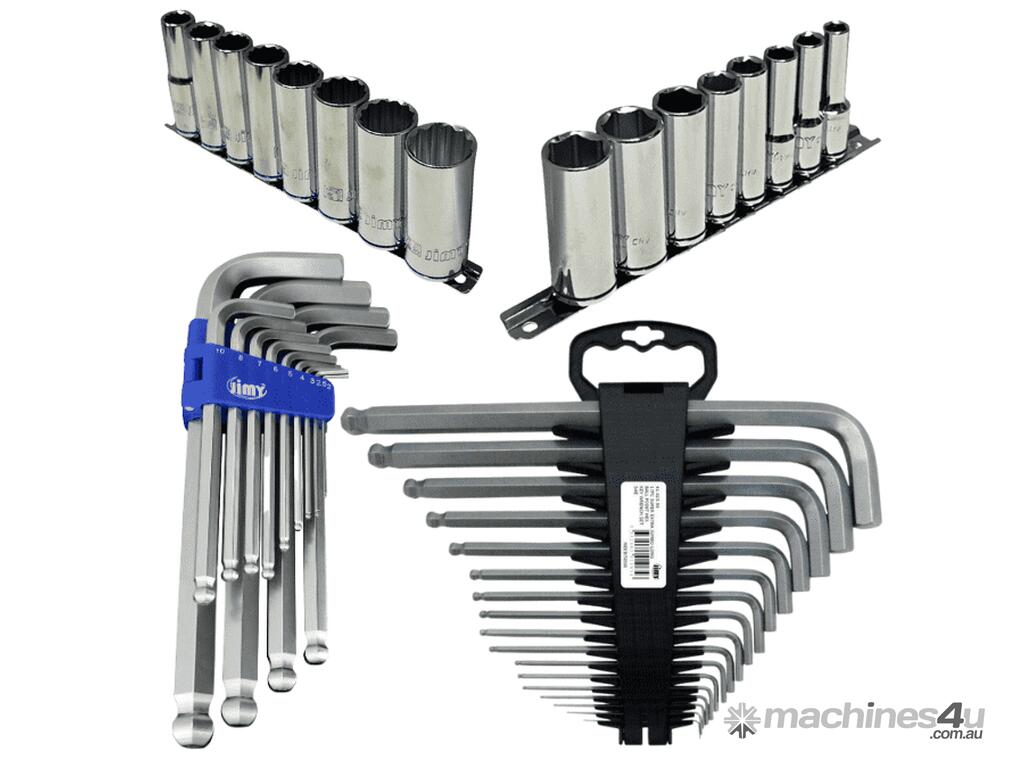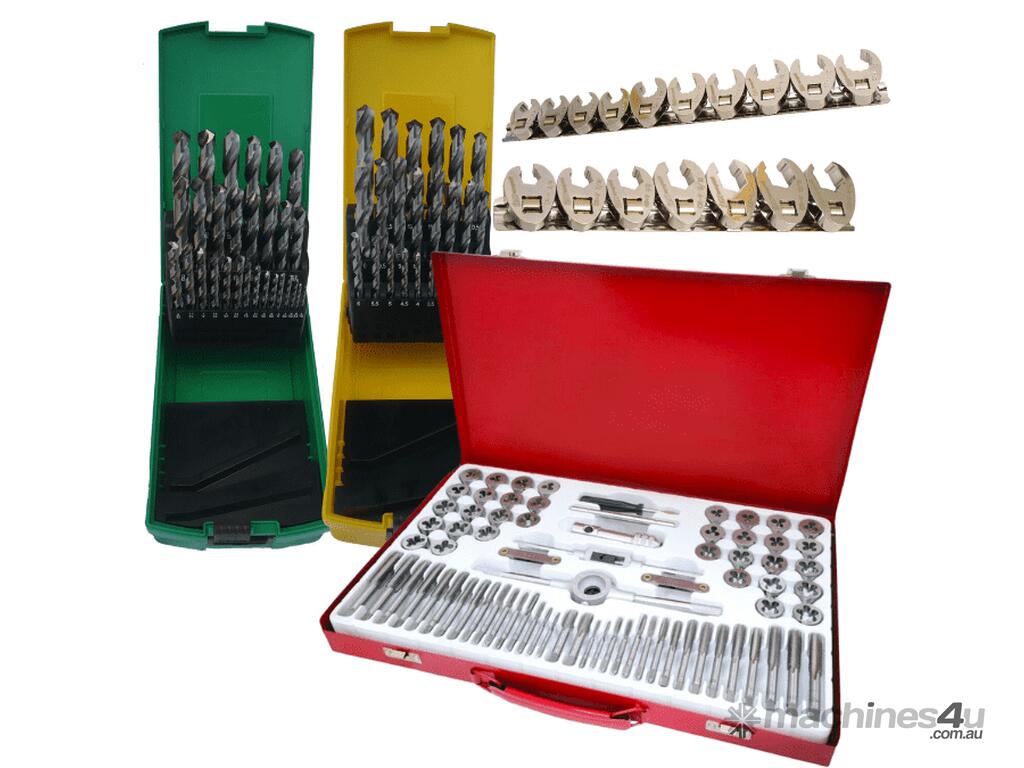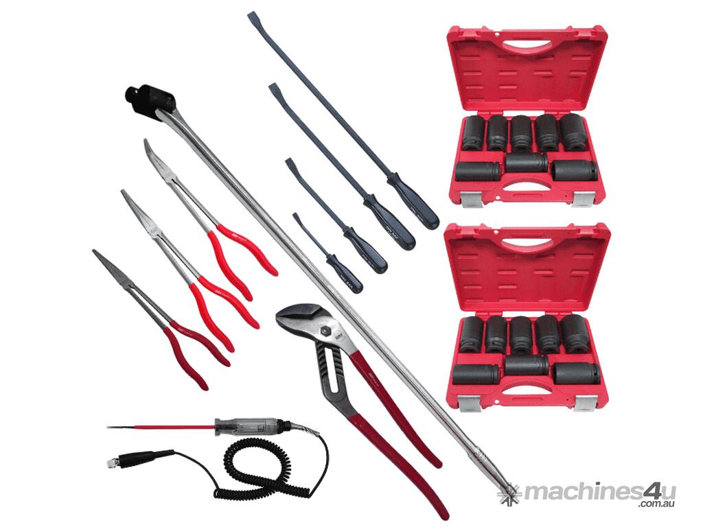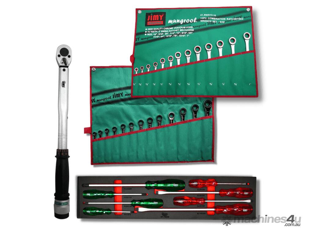 Some of the items included with this kit are, 81 piece socket and accessories foam insert with 1/4", 3/8" and 1/2" drive sockets in metric from 4mm up to 32mm and imperial from 5/32" up to 1-1/4" with ratchets, extensions and a 1/2" breaker bar also ratchet and standard ring open end spanners in metric and SAE, 1/2"dr deep metric impact sockets, 27piece 3/4" drive set, 3/4" impact sockets, drill bits, screwdrivers, pliers, hammers etc for the full list check the content list below.