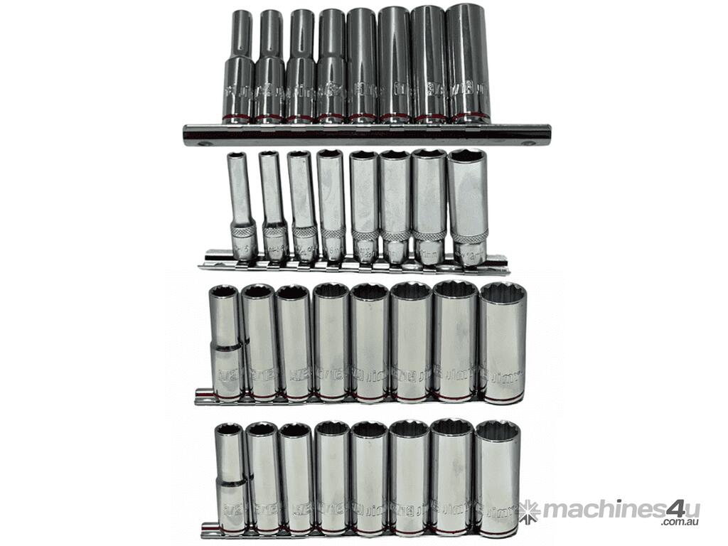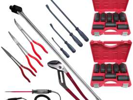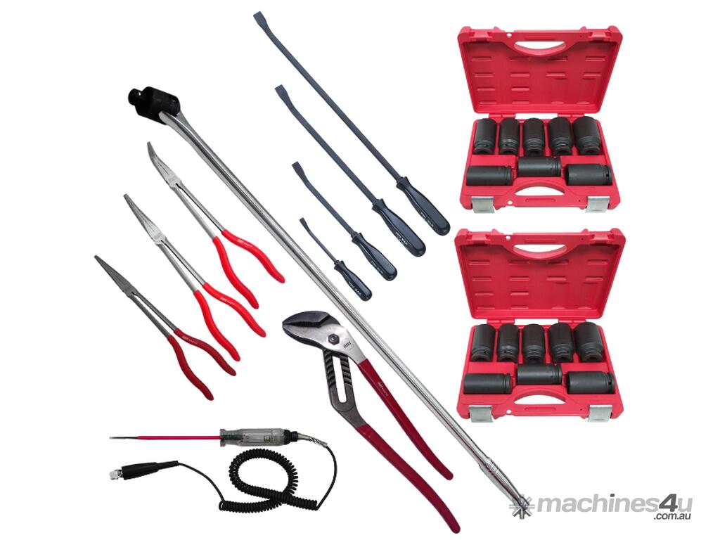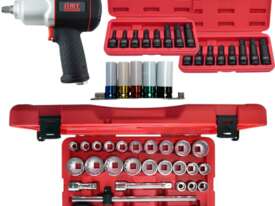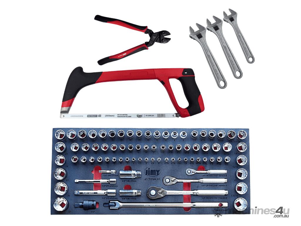 Some of the items included with this kit are, 81 piece socket and accessories foam insert with 1/4", 3/8" and 1/2" drive sockets in metric from 4mm up to 32mm and imperial from 5/32" up to 1-1/4" with ratchets, extensions and a 1/2" breaker bar also ratchet and standard ring open end spanners in metric and SAE, 1/2"dr deep metric impact sockets, 27 piece 3/4" drive set, 3/4" impact sockets, drill bits, screwdrivers, pliers, hammers etc for the full list check the content list below.