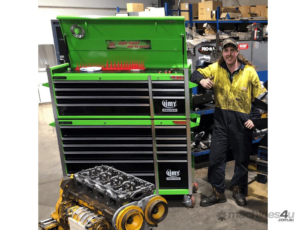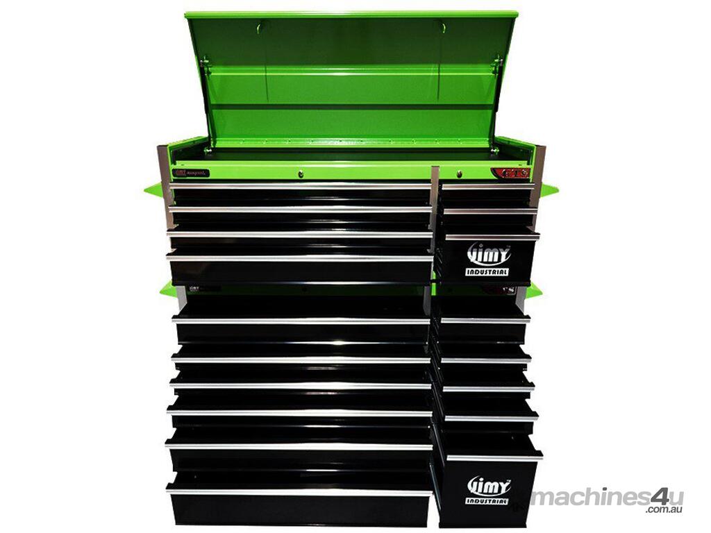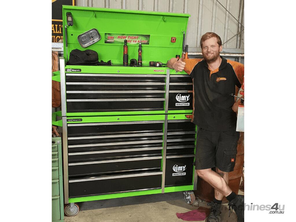 The 18 drawer “Monster Mechanic" tool kit from Jimy Tools offers a wide range of tools for the tradesperson. The kit consists of a 7-drawer top box and an 11-drawer roller cabinet, all have been powder coated with a tough industrial finish, 1.0mm thick steel, fully lockable with rear internal locking system, dual gas strut system for lidandball bearing slide drawers with twin slides on the deeper drawers.