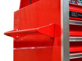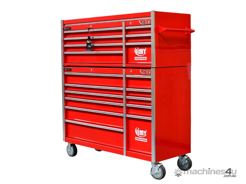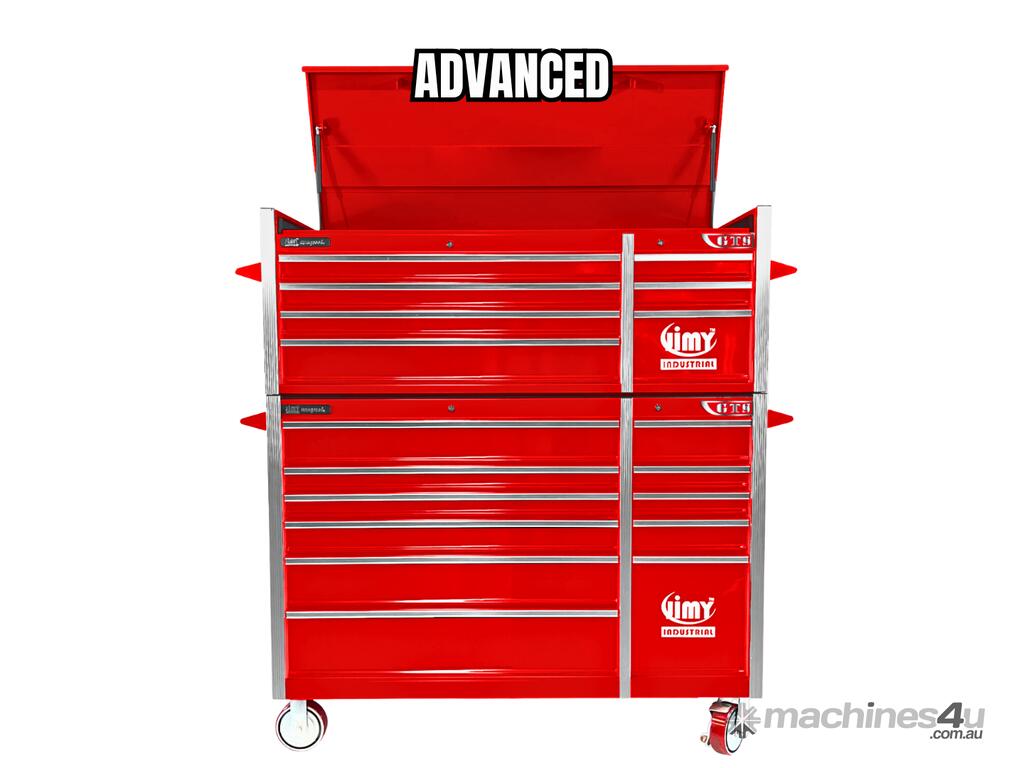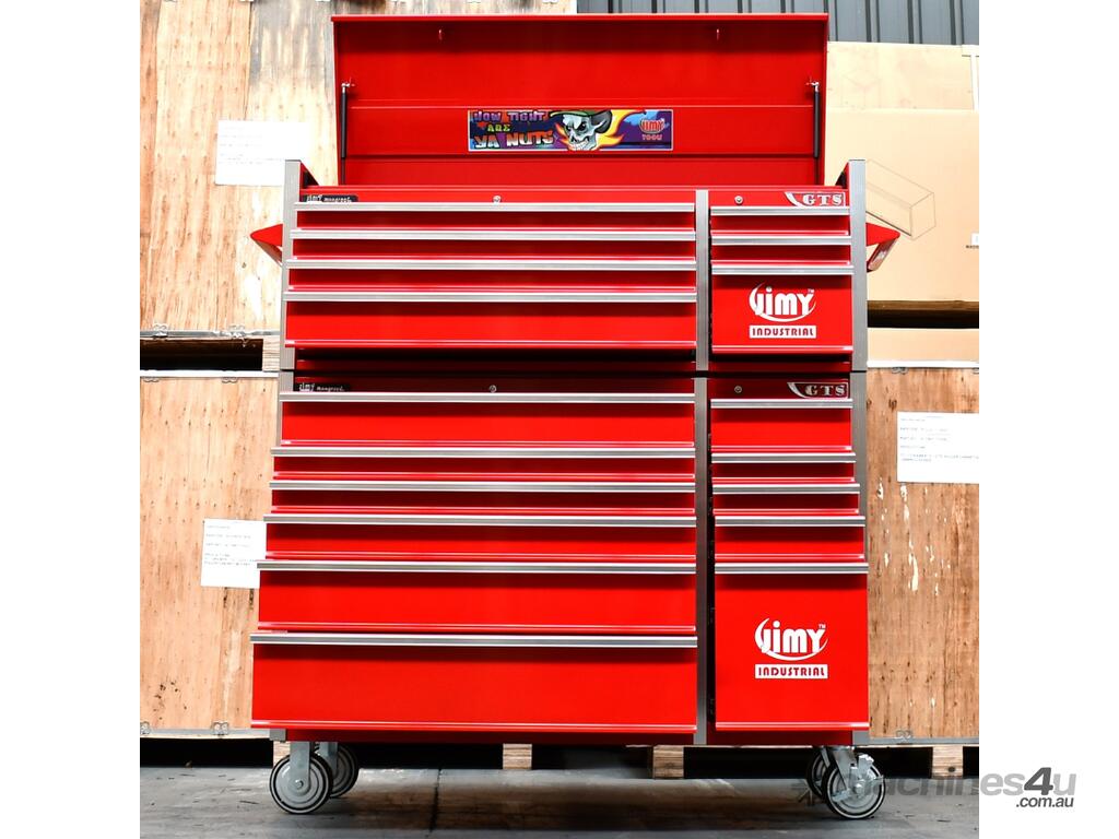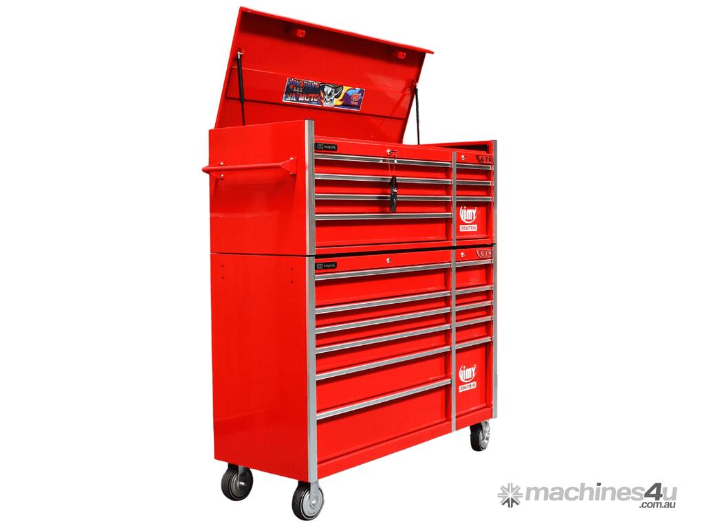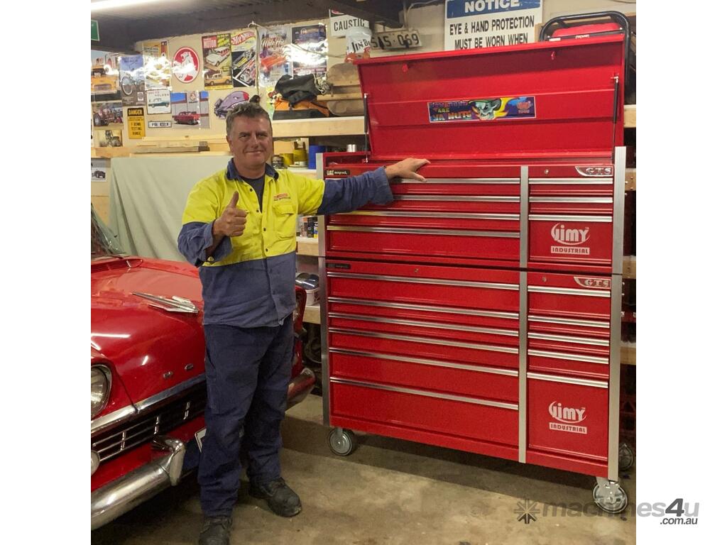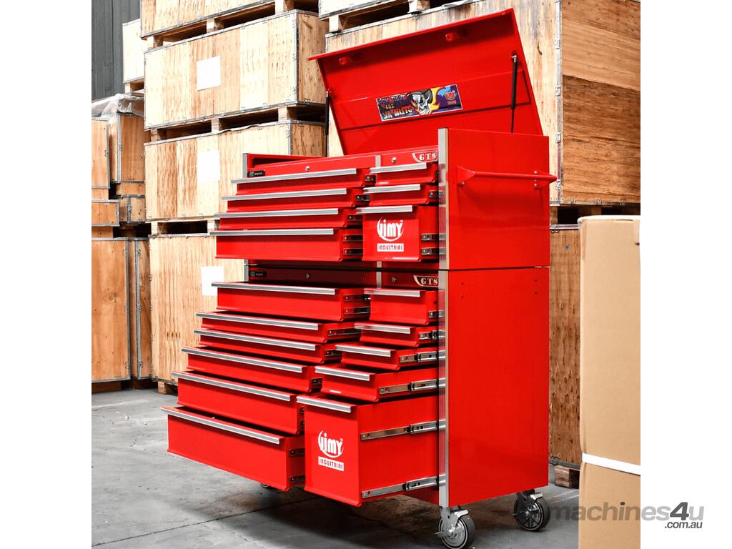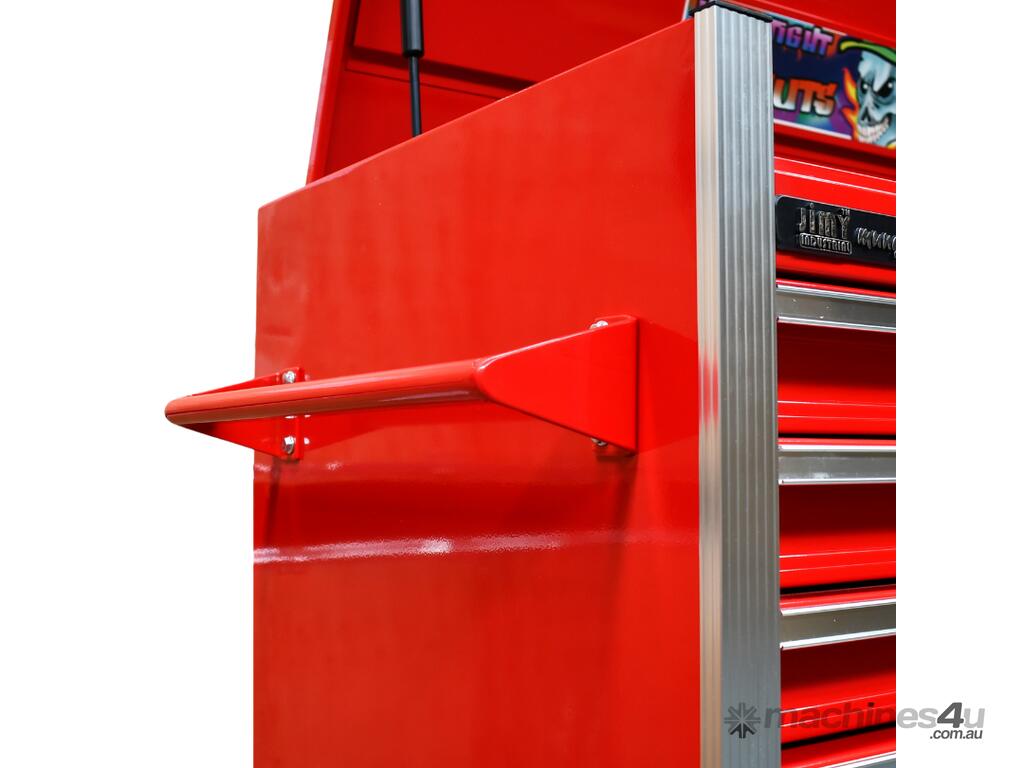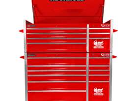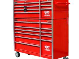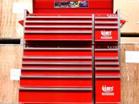 The 18 drawer “Monster Mechanic" tool kit from Jimy Tools offers a wide range of tools for the tradesperson. The kit consists of a 7-drawer top box and an 11-drawer roller cabinet, all have been powder coated with a tough industrial finish, 1.0mm thick steel, fully lockable with rear internal locking system, dual gas strut system for lidandball bearing slide drawers with twin slides on the deeper drawers.