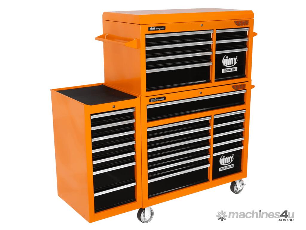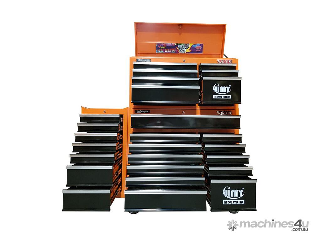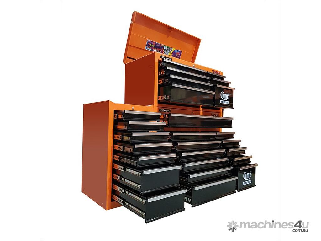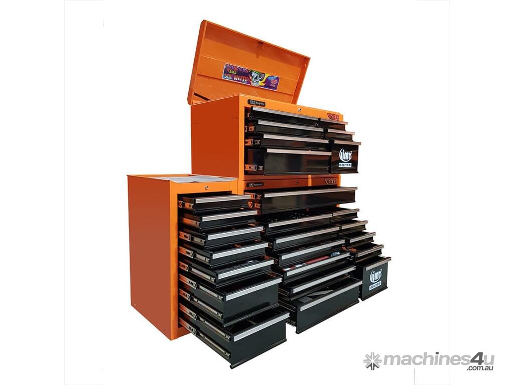 The 26 drawer “Monster Mechanic" tool kit from Jimy Tools offers a wide range of tools for the tradesperson. The kit consists of a 7 drawer top box and a 12 drawer roller cabinet with a 7 drawer side box attached all have been powder coated with a tough industrial finish, 1.0mm thick steel, fully lockable with rear internal locking system, dual gas strut system for lidandball bearing slide drawers with twin slides on the deeper drawers.