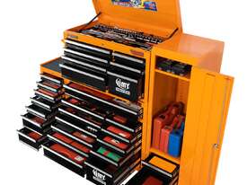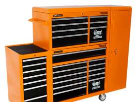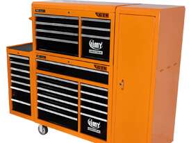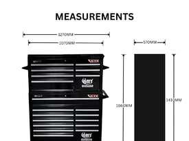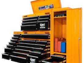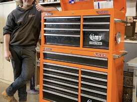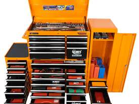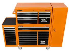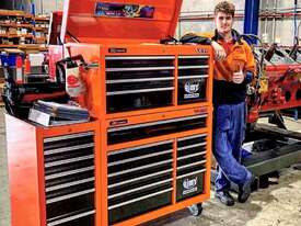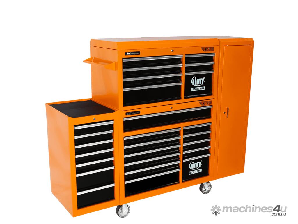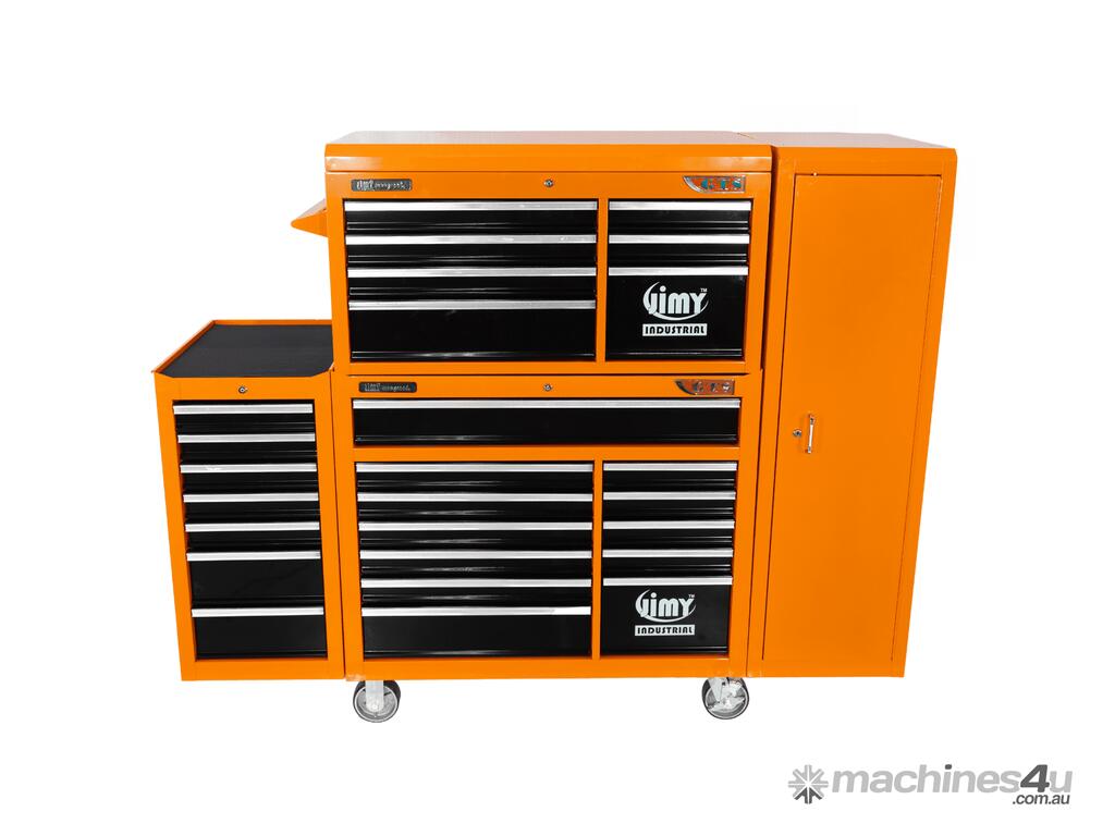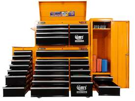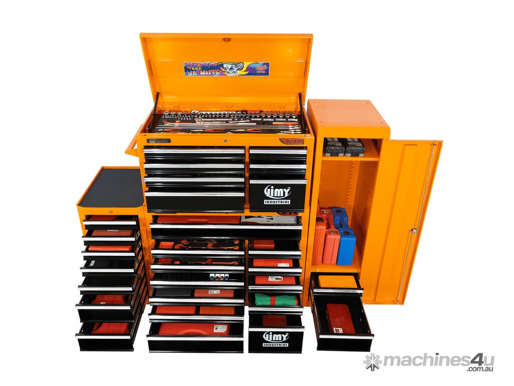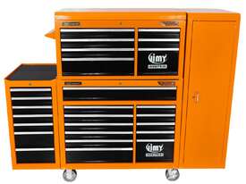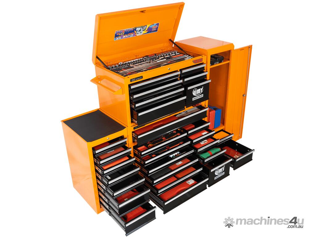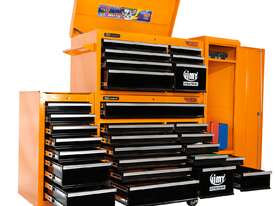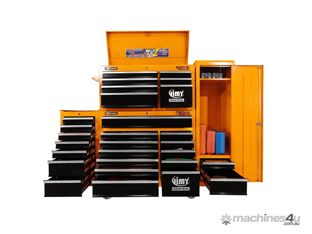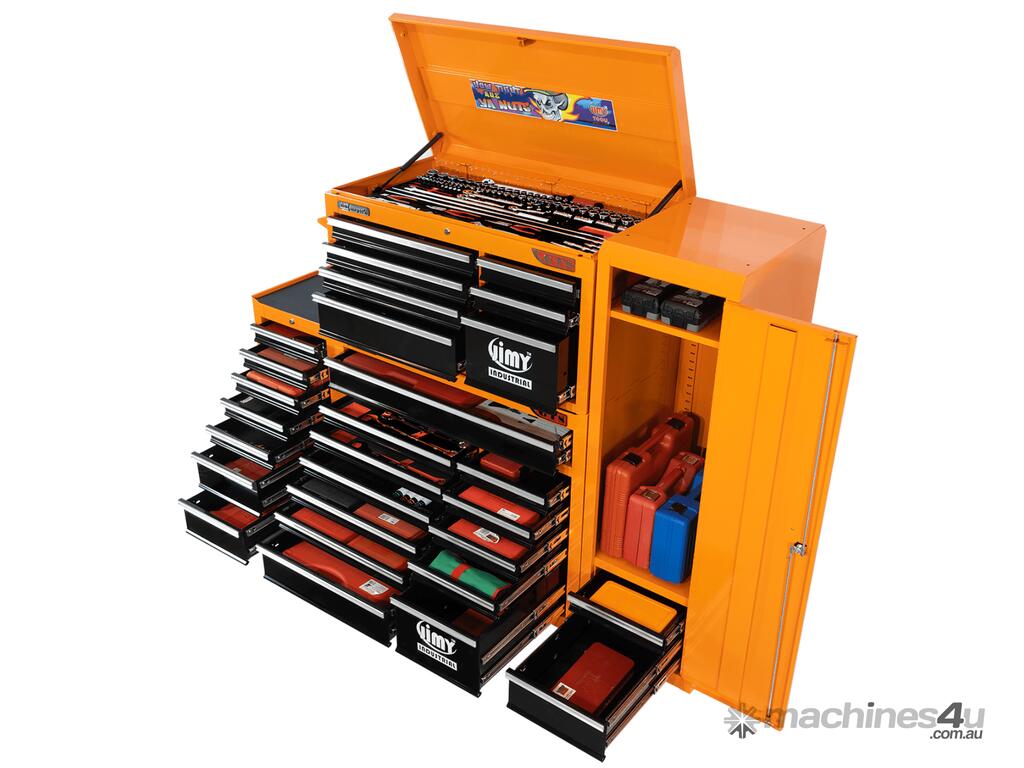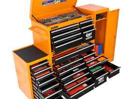 The 28 drawer “Monster Mechanic" tool kit from Jimy Tools offers a wide range of tools for the tradesperson. The kit consists of a 7 drawer top box and a 12 drawer roller cabinet, a 7 drawer side box & full height side locker attached that all have been powder coated with a tough industrial finish, 1.0mm thick steel, fully lockable with rear internal locking system, dual gas strut system for lidandball bearing slide drawers with twin slides on the deeper drawers. Both add on side boxes and full height side locker are versatile and can be attached on alternate sides.