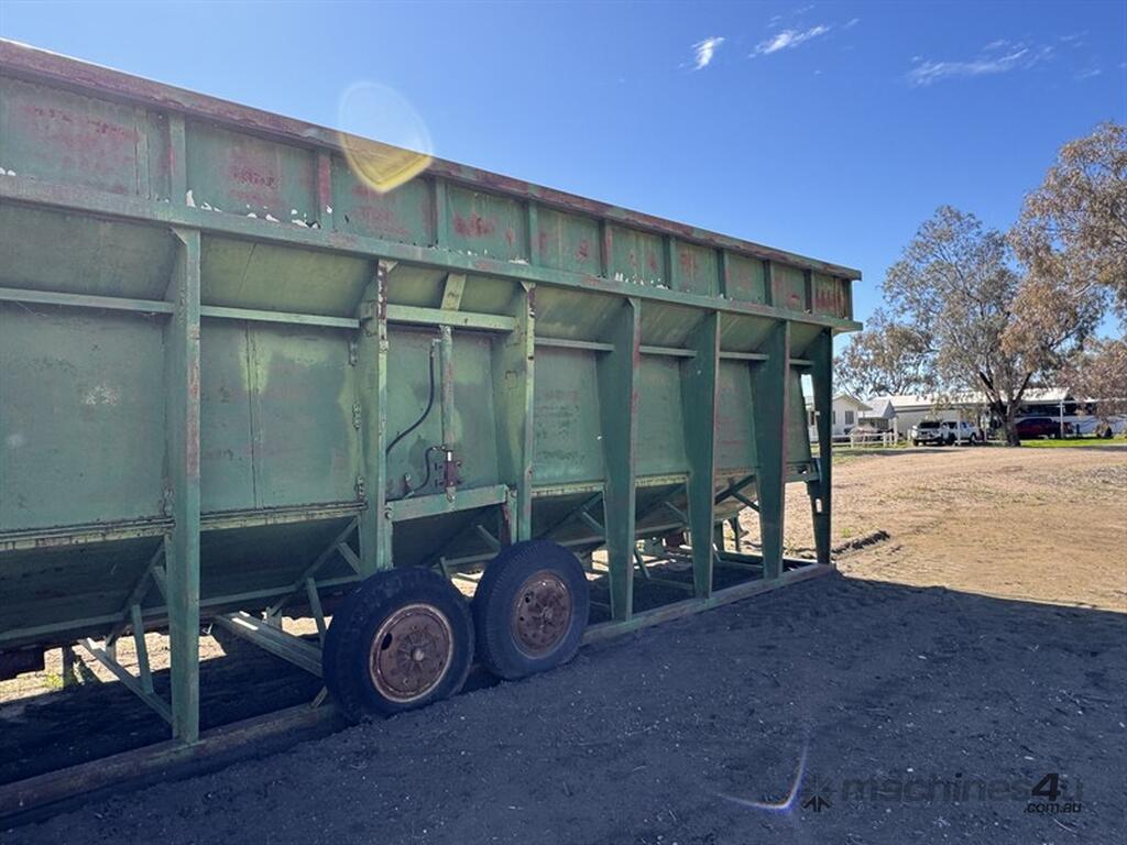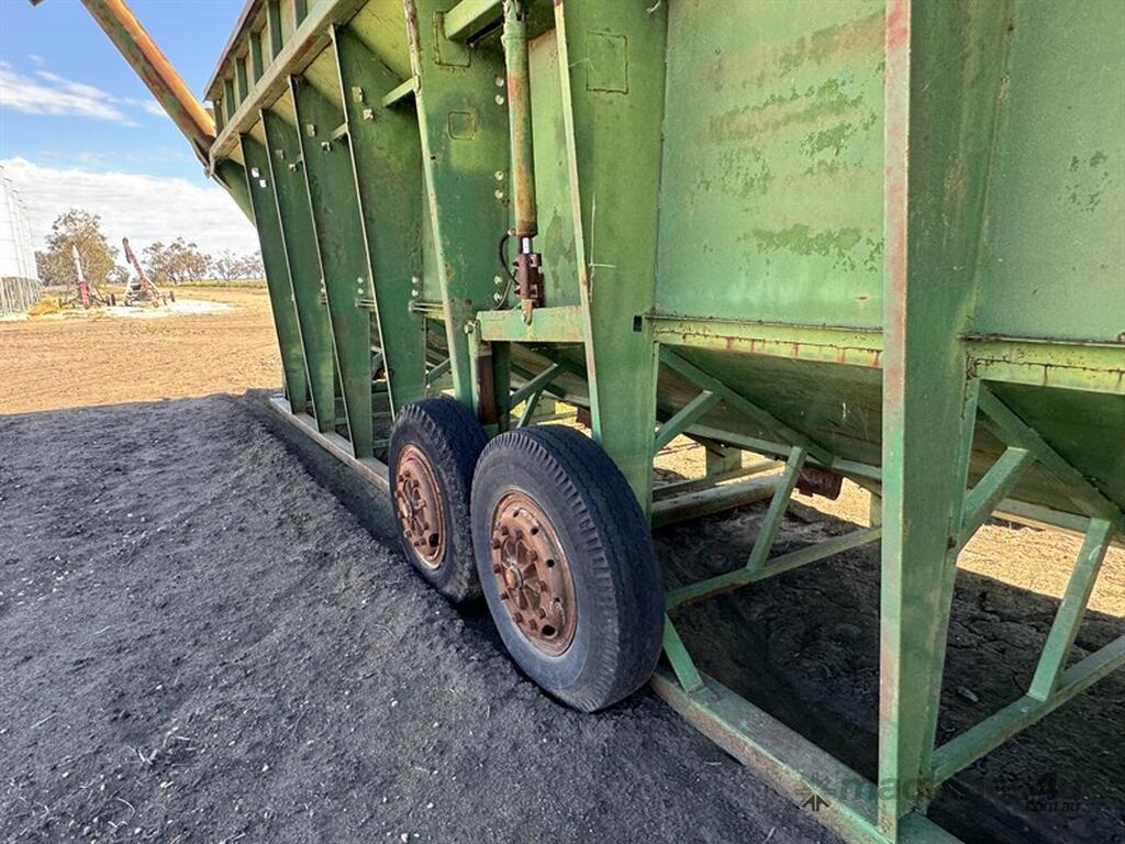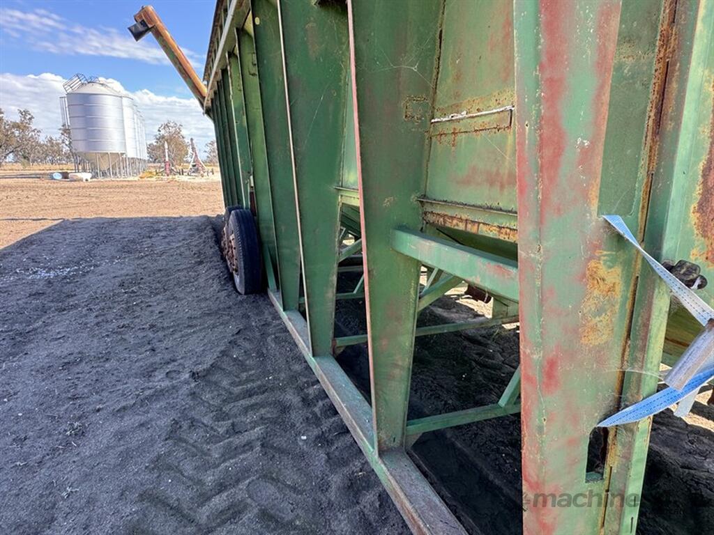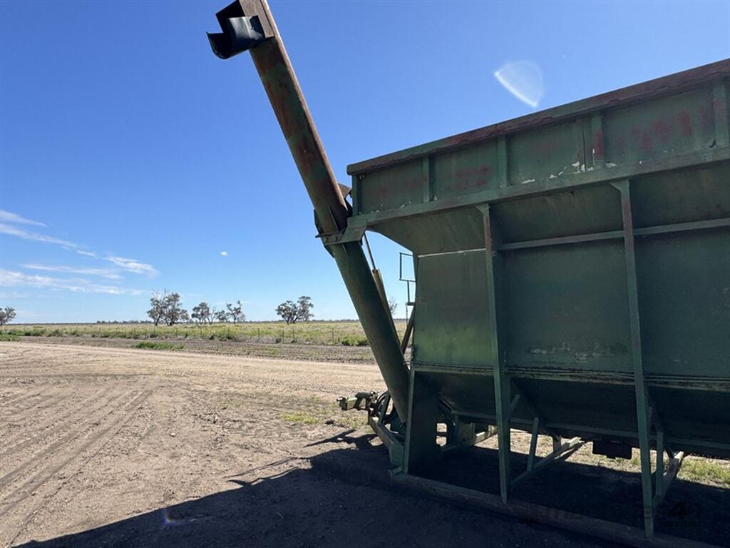 CUSTOM BUILT 75T MODULE MOTHER BIN GRAIN HANDLER - Wee Waa Steel & Pipe converted module builder, 40ft length, 75T capacity, has been cut & widened, hungry boards added, no PTO drive shaft, hydraulic folding 14in outloading auger, no hydraulic slide, cvan be moved manually when empty, hydraulic lift tyres, 2x roll over tarps, had new bearings done pre 2024 season. Available in the Hatton Farming Online Sale "Orien" Wee Waa via MRE Auctions. Contact Sandy Bailey for more information