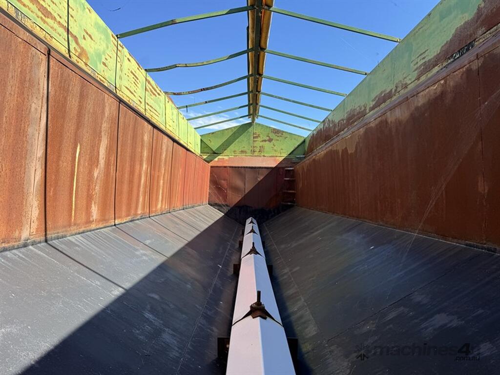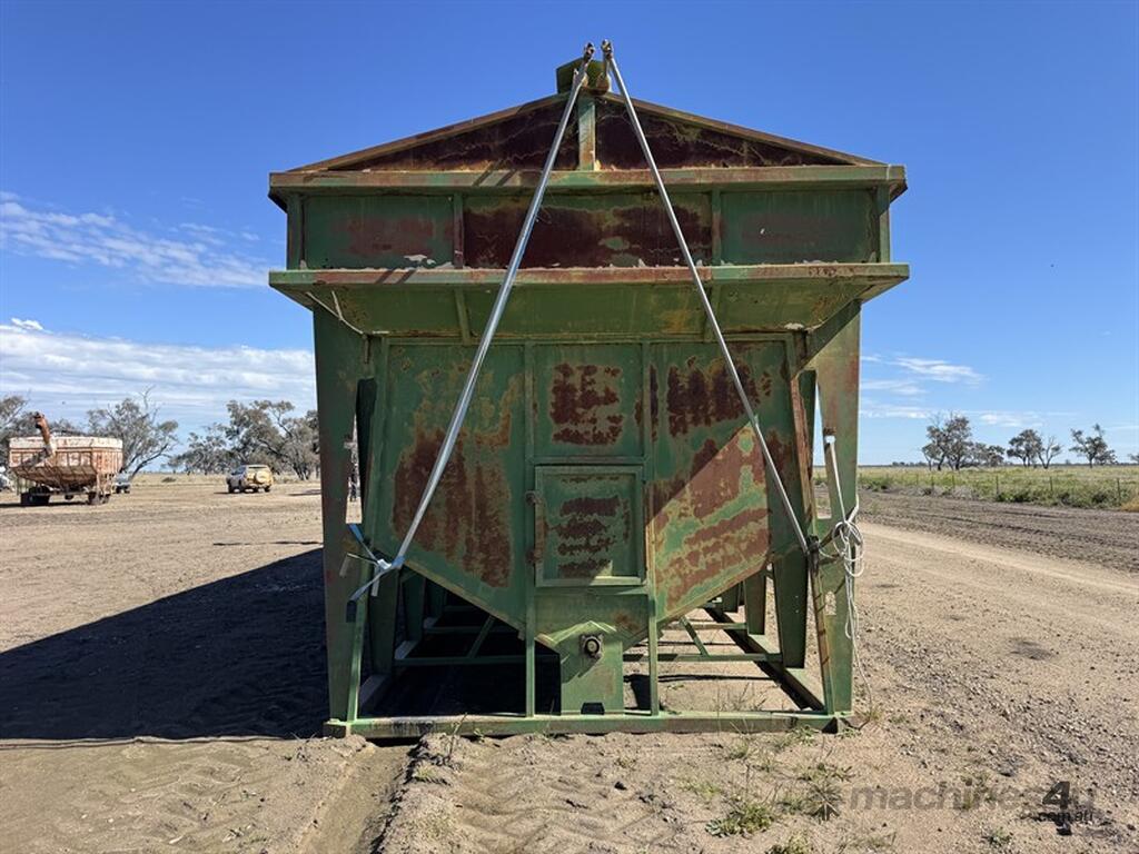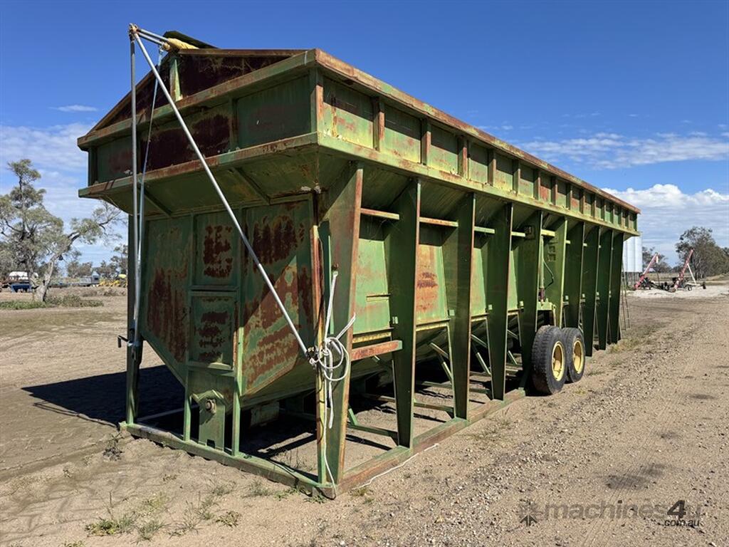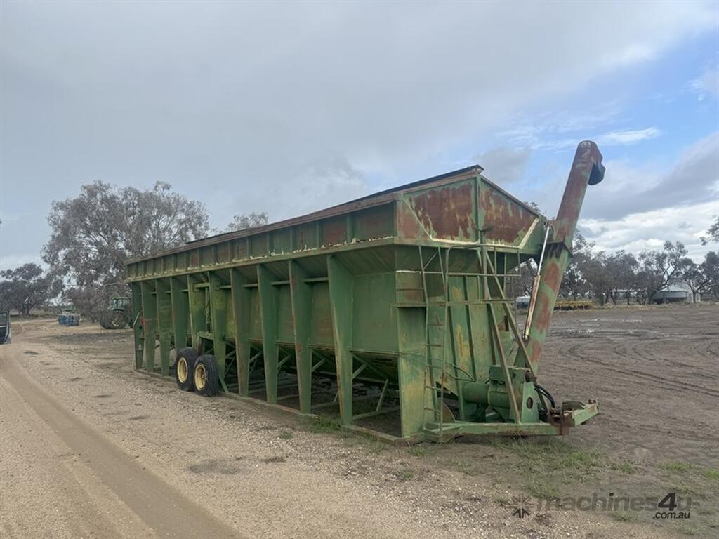 CUSTOM BUILT 75T MODULE MOTHER BIN GRAIN HANDLER - Wee Waa Steel & Pipe converted module builder, 40ft length, 75T capacity, has been cut & widened, hungry boards added, no PTO drive shaft, hydraulic folding 14in outloading auger, no hydraulic slide, cvan be moved manually when empty, hydraulic lift tyres, 2x roll over tarps, had new bearings done pre 2024 season. Available in the Hatton Farming Online Sale "Orien" Wee Waa via MRE Auctions. Contact Sandy Bailey for more information
