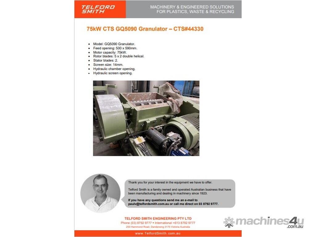 75kW CTS GQ5090 Granulator :      $42,000 AUD($46,200 Inc. GST)
