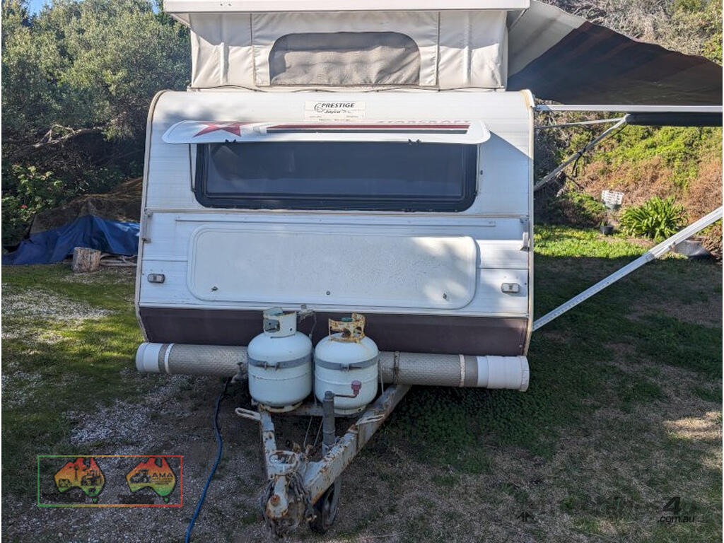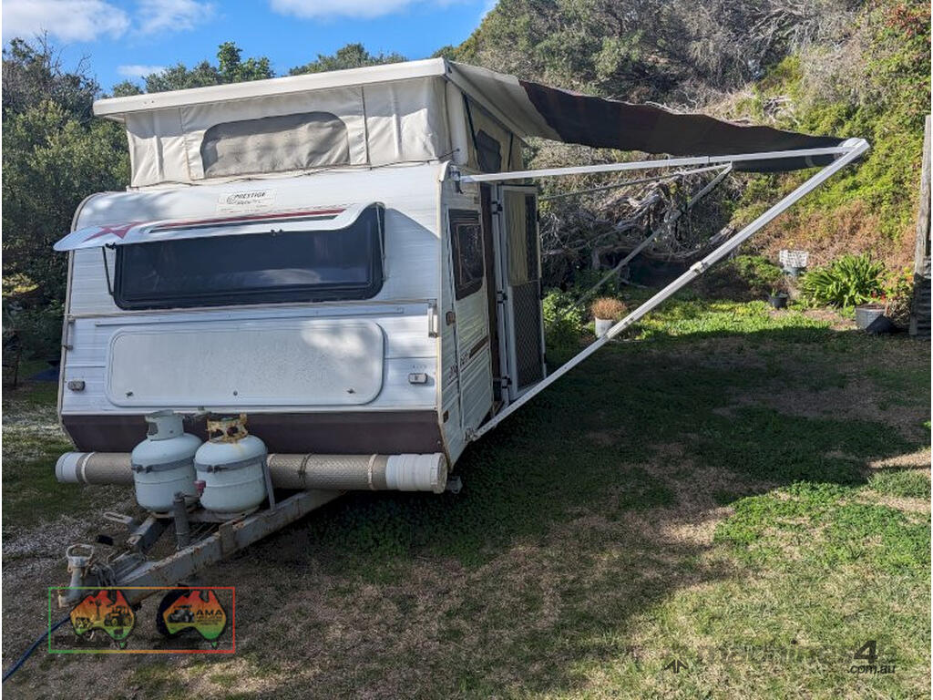 1996 Prestige Jayco pop top ~ 18ft long, 7ft wide, 8ft high when set-up ~ Tyres are in good condition ~ Plus awning about 18ft long x 10ft wide ~ Vin no 6AM000000T1627536 ~ GST Exempt Sale ~ 5.5% Buyers Premium added to sale price ~ Contact AMA Agent:- Troy