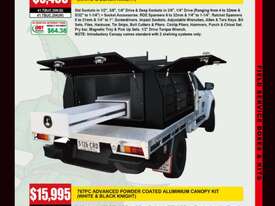 This tough canopy is made from 2.5mm thick marine grade aluminium with loads of reinforcement on all walls. The canopy is secured withlockable Whale Tale catches and has adjustable gas struts to hold it open. The truck box is finished with a UV stabilised white powder coat finish.
