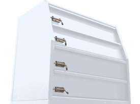 Includes 4x 4 Drawer Robust Shelving Modules with retractable latches
