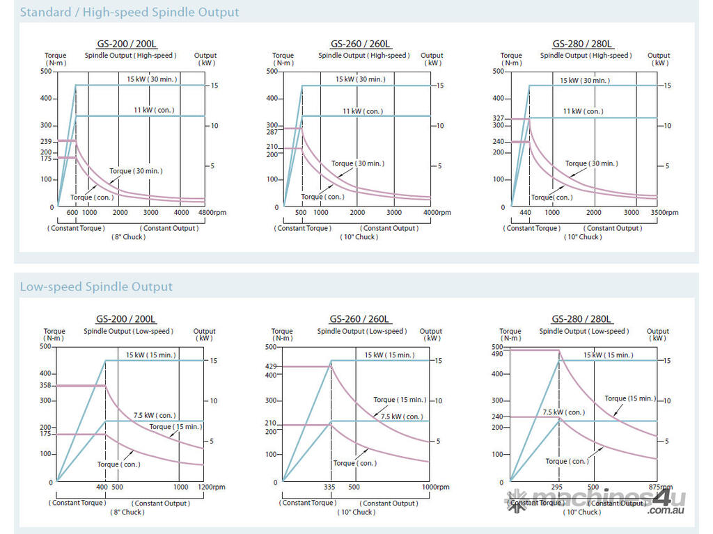 Packed with industry leading technology and top quality components, the Goodway GS-200 series turning centers combine incredible power, strength, and speed to bring you The Ultimate Machining Power®. These powerful ultra performance machines will easily accomplish the demanding turning applications of today and tomorrow. 2 bed lengths (utilizing the same advanced design) and 3 spindle sizes offer a total of 6 basic model confgurations to suit your application. Furthermore, with live tooling, C-axis, Y axis, and sub-spindle capabilities, milling, drilling, and front / back-end turning applications may be completed in one single machine.