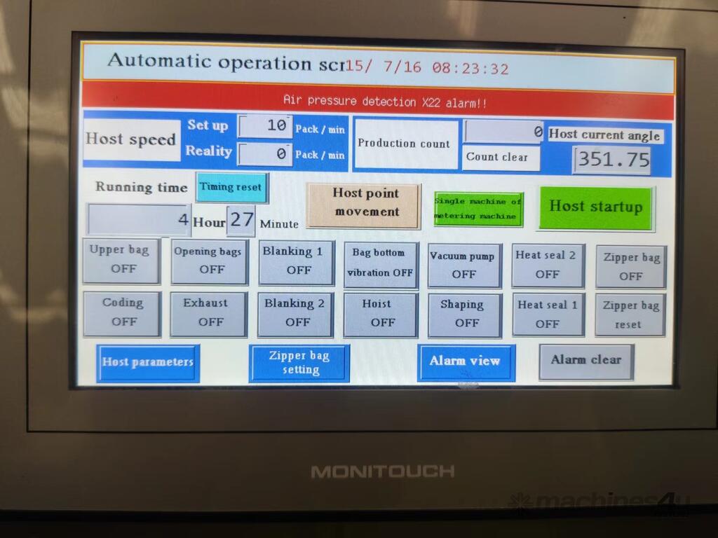 - It provides seal section clean, zip open, bag detection, (no bag no fill, empty bag rejection).
