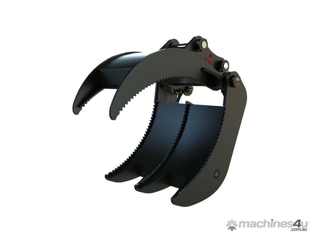 Roo Attachments Hydraulic Grabs for 6 to 8Ton Excavators. This grab is equipped with twin hydraulic cylinders, with other hydraulic grabs in stock to suit from 0.8T to 36T Excavators.