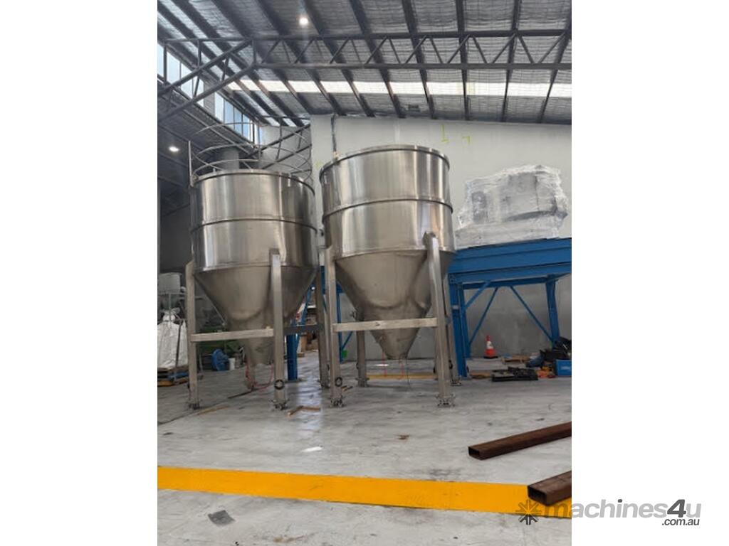 Available for sale are 8 x 15,000 litre stainless steel tanks, ideal for storage and processing applications. These tanks are custom made, solidly built, and ready for use.