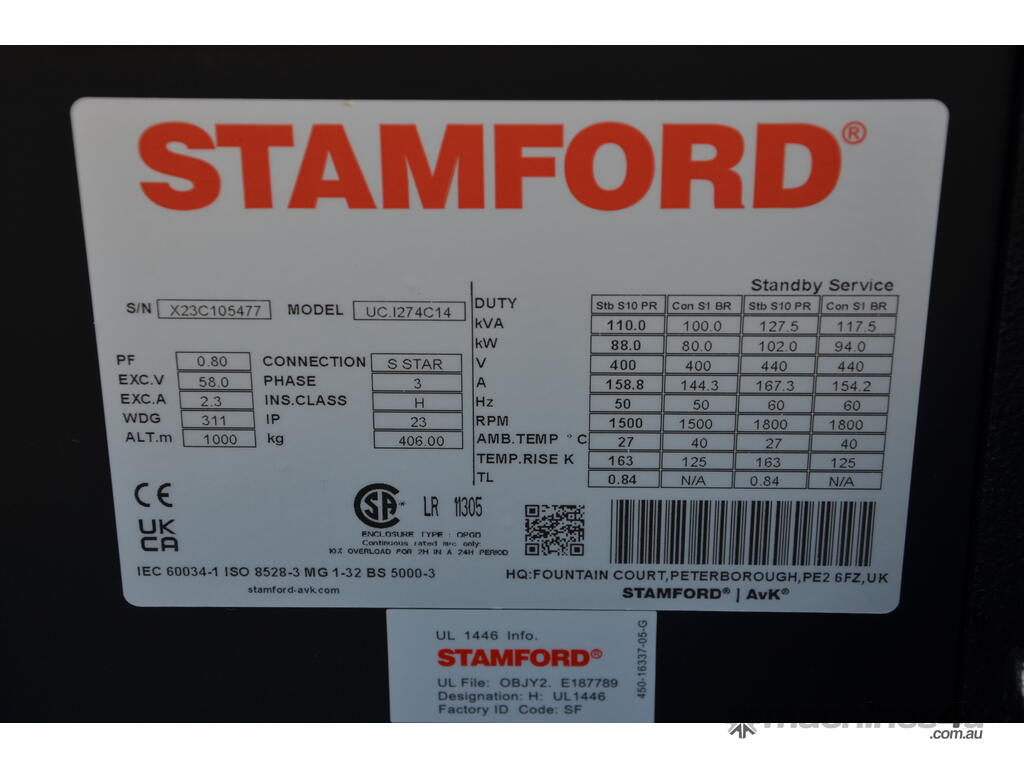 80 KVA (88 KVA Standby) Cummins Genuine Stamford Brushless Quality Diesel Generator Set , Comes Complete with DEEP SEA 4520 series auto Start stop controller , Low Maintenance Starting Batteries , Battery Isolator, Anti Vibration Mounts , 24 Hour Fuel Tank , Primary and Secondary Fuel Filters , Residential Exhaust Silencer , Photos May Not be Exact Build