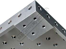 The 800 x 1200mm Welding Table features a welded S355 steel frame, 12mm thickness, CNC-machined for precise flatness. Featuring Ø16mm holes with a 50 x 50mm hole pattern, it offers versatile clamping options for fixtures. Solid steel ribs and 50mm high sides ensure rigidity, while the plasma nitriding coating resists spatter, wear, and rust. It also includes a pull-out swarf tray for added convenience.