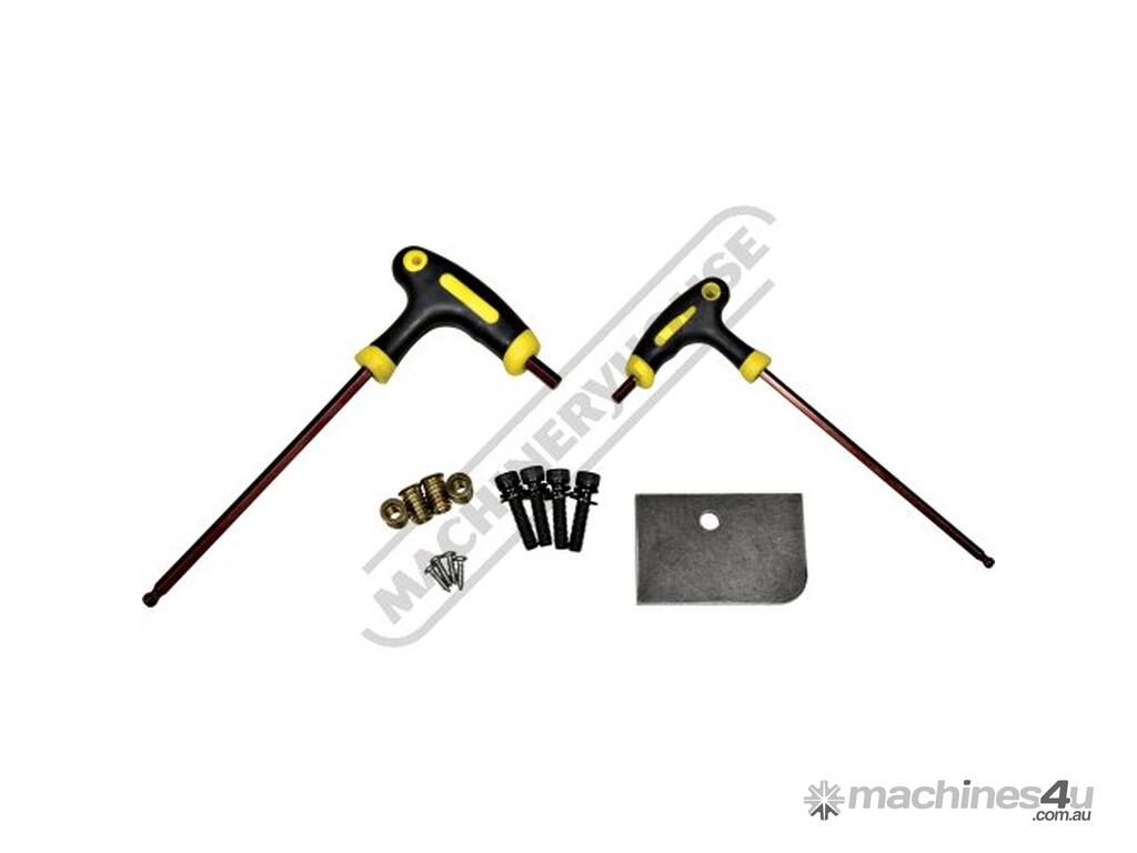 The kit includes a sheet steel cover for the benchtop pull-out swarf tray and hardware pack for mounting to benchtop