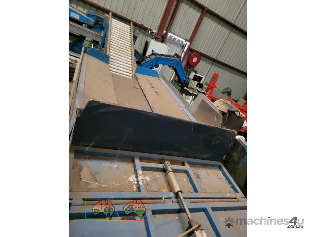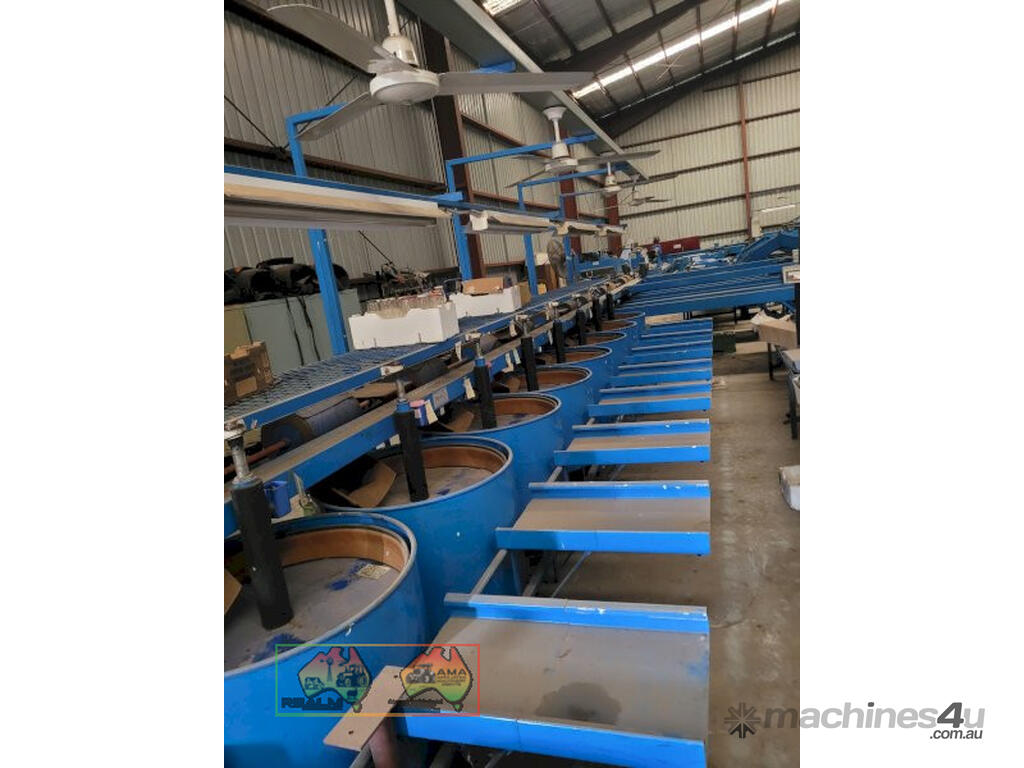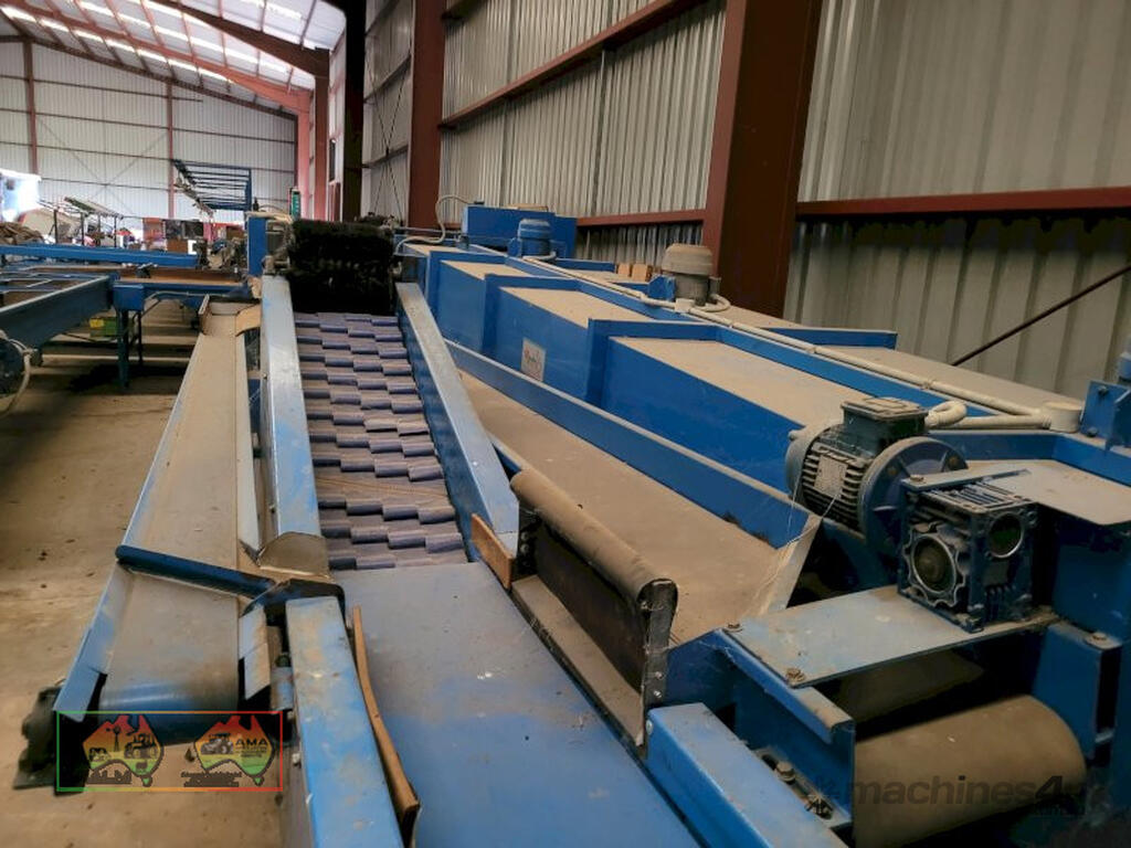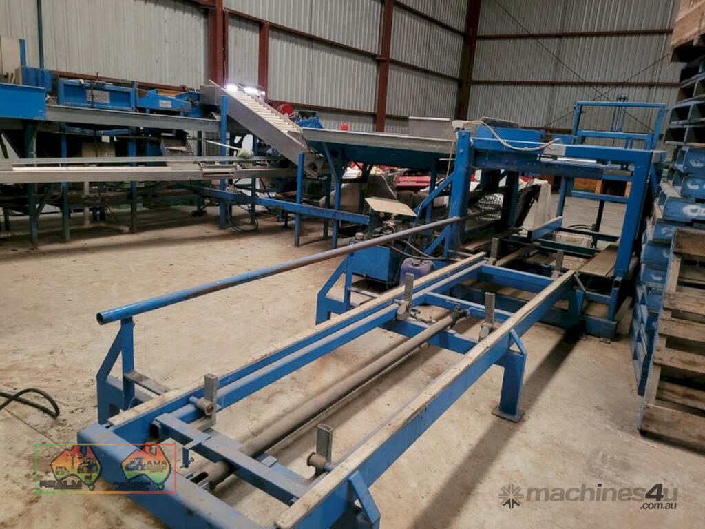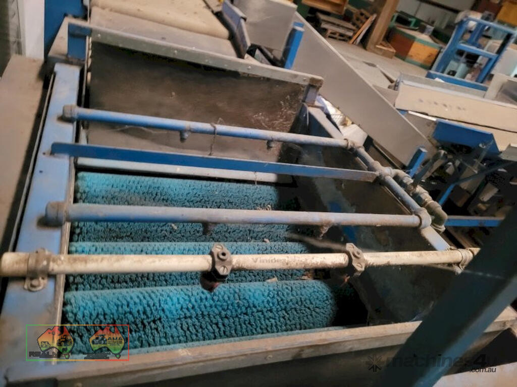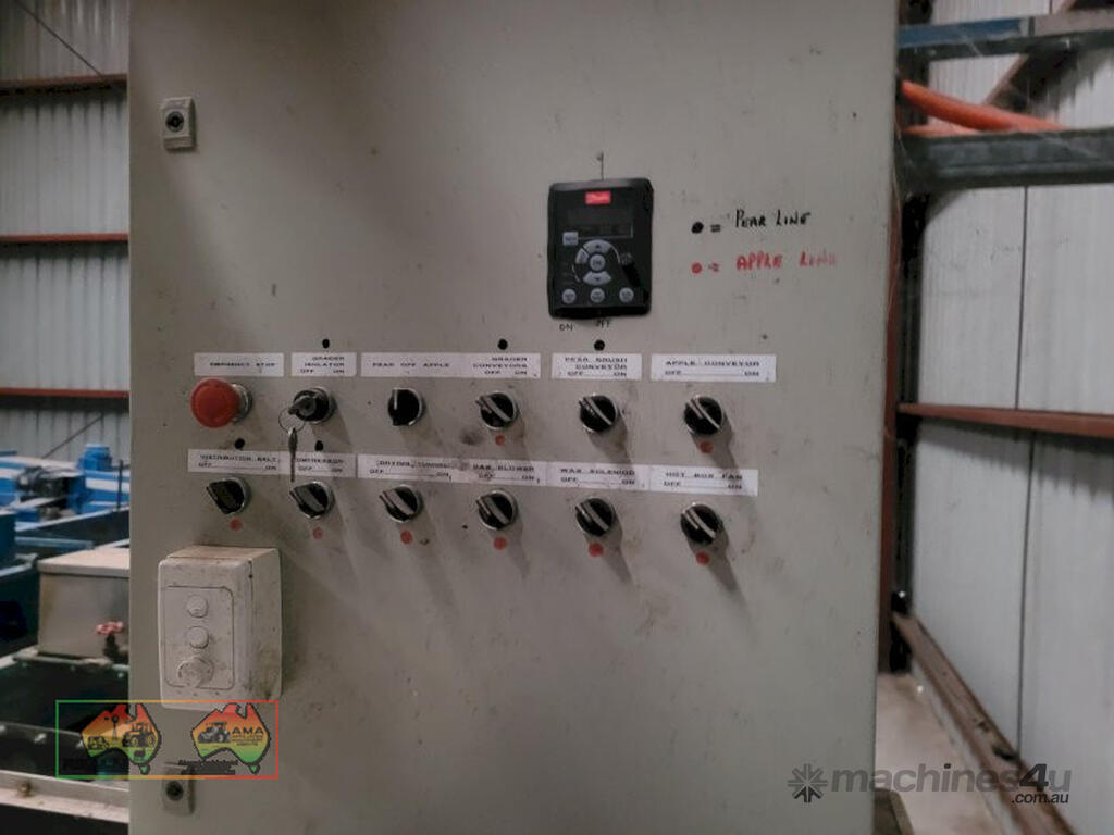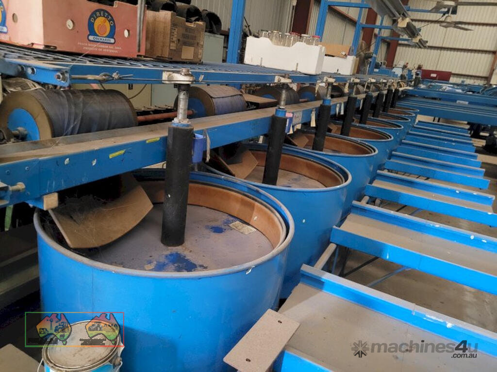Single Row Pomme Fruit Grader ~ Manufactured & installed by GP Graders ~ A complete system from Bin Tipper & Stacker, to wash, scrub, dry & waxing ~ Computerized sorter based on fruit weight ~ Label station ~ Numerous pack-out stations ~ This is a complete functioning system, well serviced & in good operating condition.