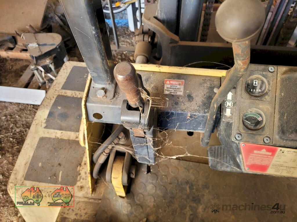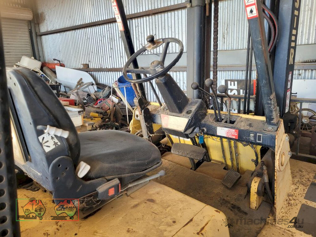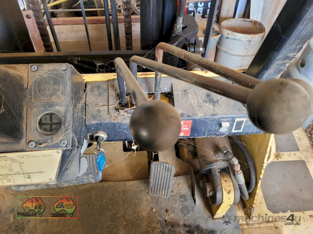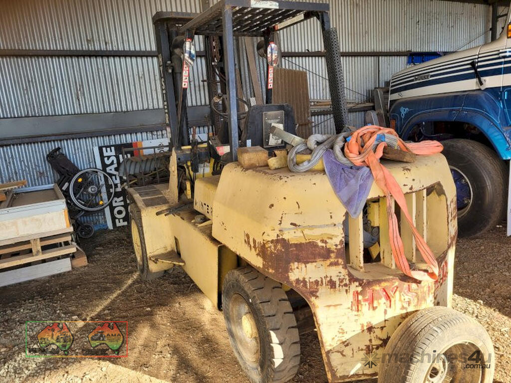 4 Ton Hyster Fork Lift (Model H 4.00 XLS-6) ~ Chevy V6 engine, on gas ~ 6,860 Hrs ~ 3.7m Lift ~ Side shift ~ Solid yard tyres ~ Duals on drive wheels ~ Good working cond. (See video)