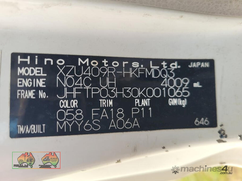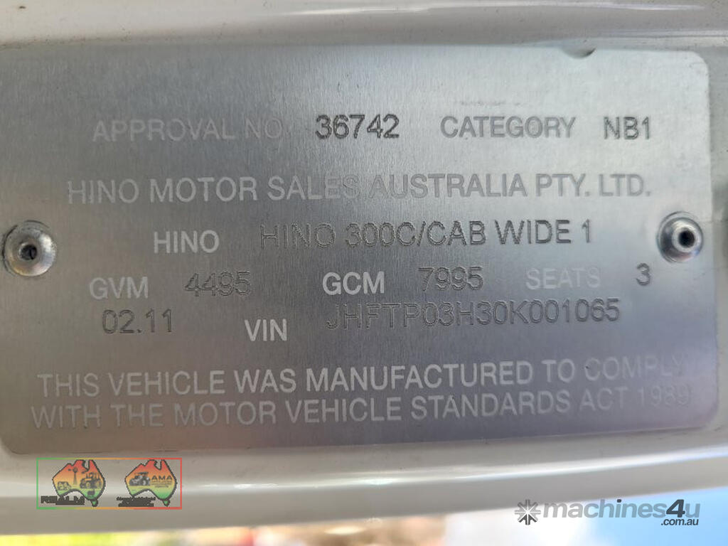 2011 Hino 300c 616 Cab/chassis ~ 4Ltr, 4cyl, Turbo diesel engine ~ 150 Hp ~ 5sp Manual ~ VIN: JHFTP03H30K001065 ~ Eng. No. N04C-UH-4009 ~ 478,571 Kms ~ Near new tyres ~ Starts easily, runs & drives well (see video) ~ A very presentable truck (except minor front damage) ~ Replace bumper bar & should be presentable enough to try for RWC ~ Payment DUE within 24 Hrs of Invoice ~ To be Sold as-is, prior inspection recommended. ~ NB: This item is GST exempt. ~ A Buyers Premium of 5% (+GST) applies to all Lots. ~ If you wish to enquire further about our listings, please Contact AMA Agent: Michael DOWNIE on or